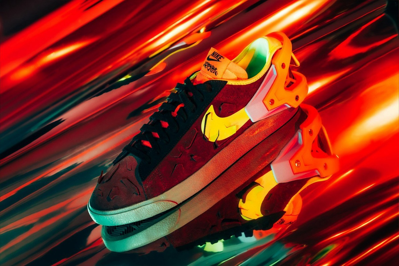 这一次双方选用了 Blazer Low 低帮鞋款为蓝本,以一种 “窗花” 式的破坏手法,带来双层鞋面的独特效果。