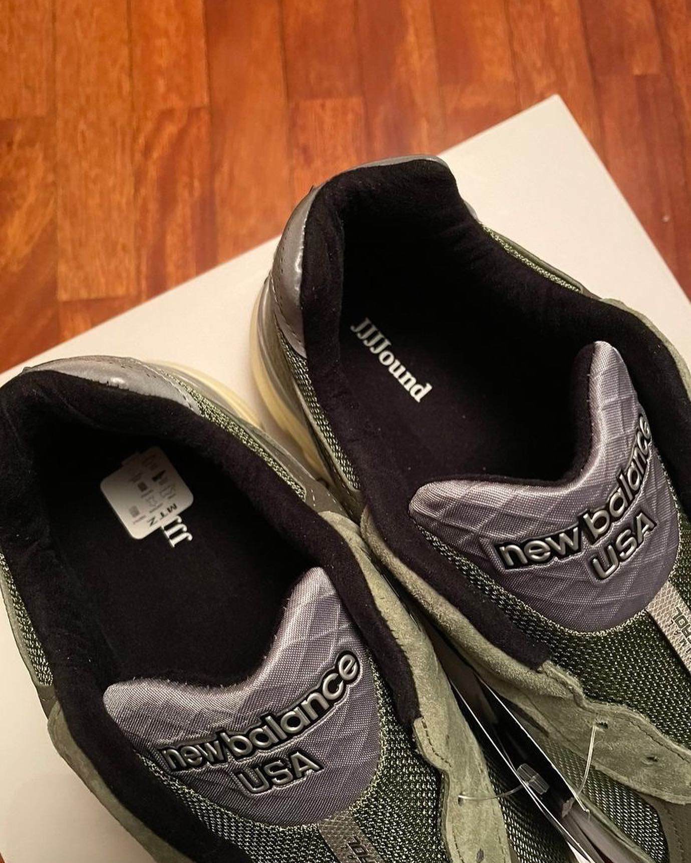 鞋垫点缀 JJJJound 和 New Balance 的双方品牌 Logo,低调展现联名身份。
