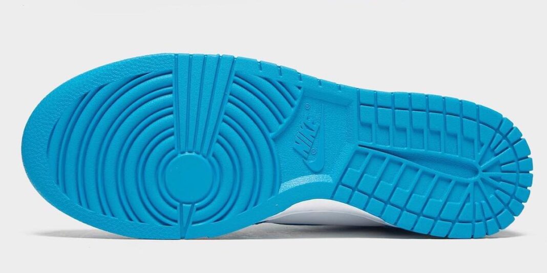 第一双 Dunk High 采用白色皮革材质覆盖,搭配蓝色鞋身框架,延续 Dunk 一如既往的高规格质感,营造出「北卡」配色的既视感。