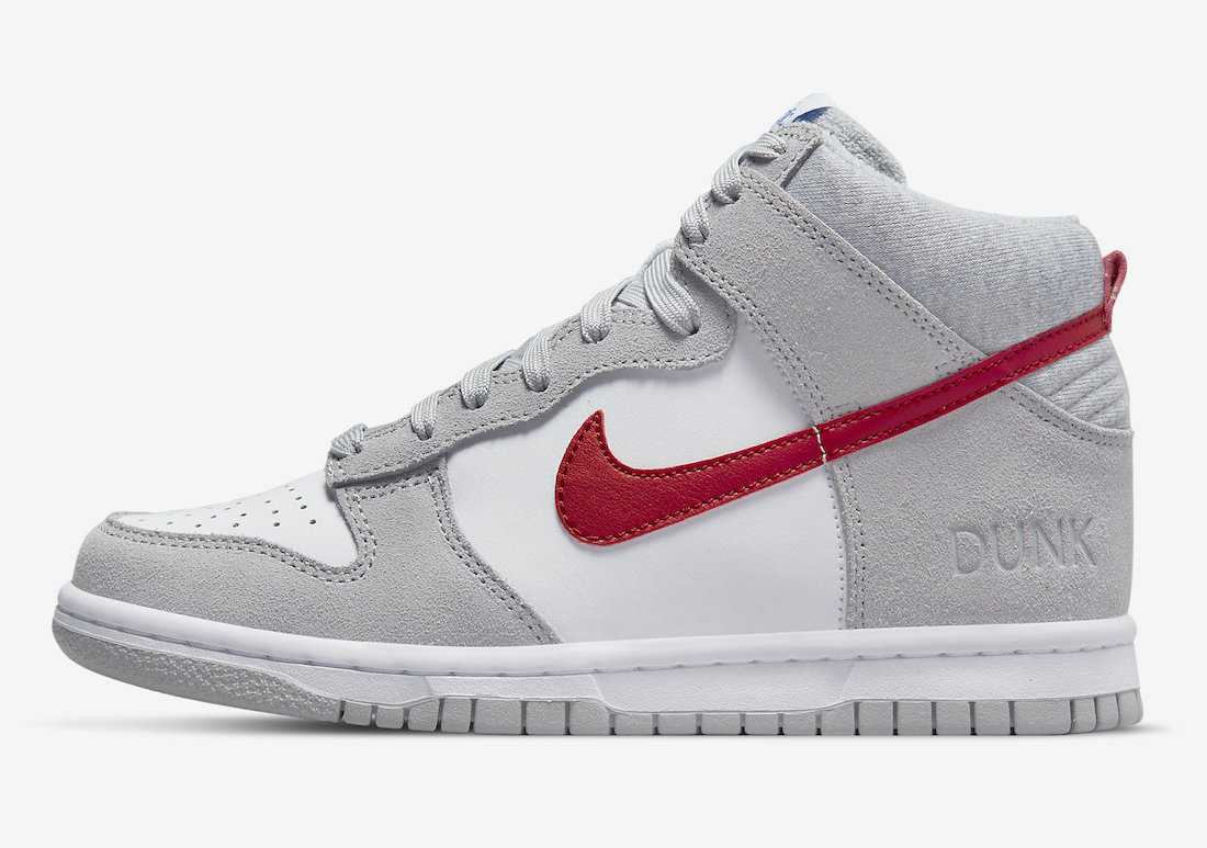 鞋侧红色 Swoosh Logo 搭配鞋跟后部压印的 Dunk 字样,彰显鞋款身份。