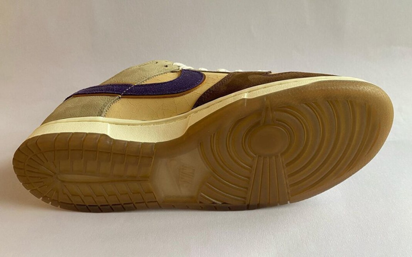 鞋身两侧的 Nike Swoosh 使用紫色麂皮制造,添加更多色彩层次感。