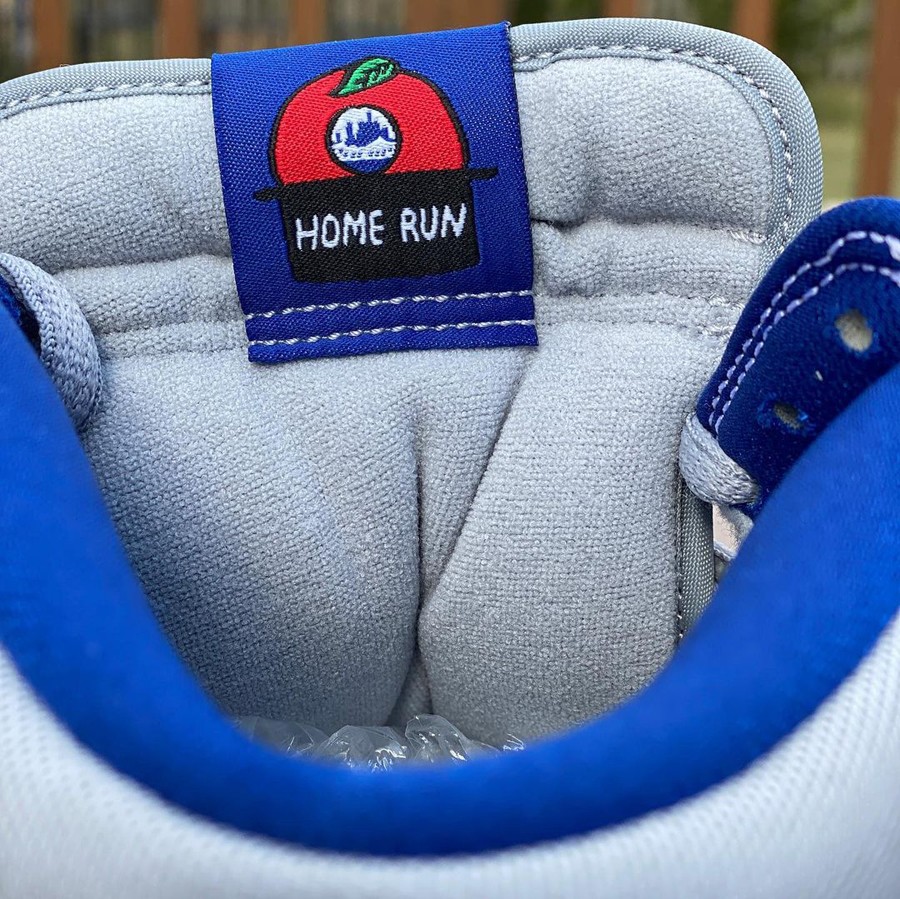 特别之处在于,左、右脚鞋舌内侧分别暗藏纽约大都会球场门口的地铁 7 号线和花旗球场(Citi Field)的元素,彰显专属配色主题。
