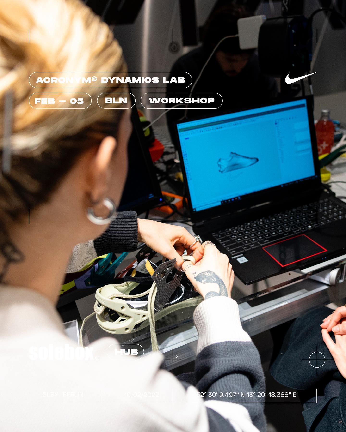 位于柏林的知名球鞋店铺 solebox 邀请了 Errolson Hugh 参与举办了一个名为 ACRONYM Dynamics Lab 的线下活动,打造了一个「3D 后跟框架的定制研讨会」