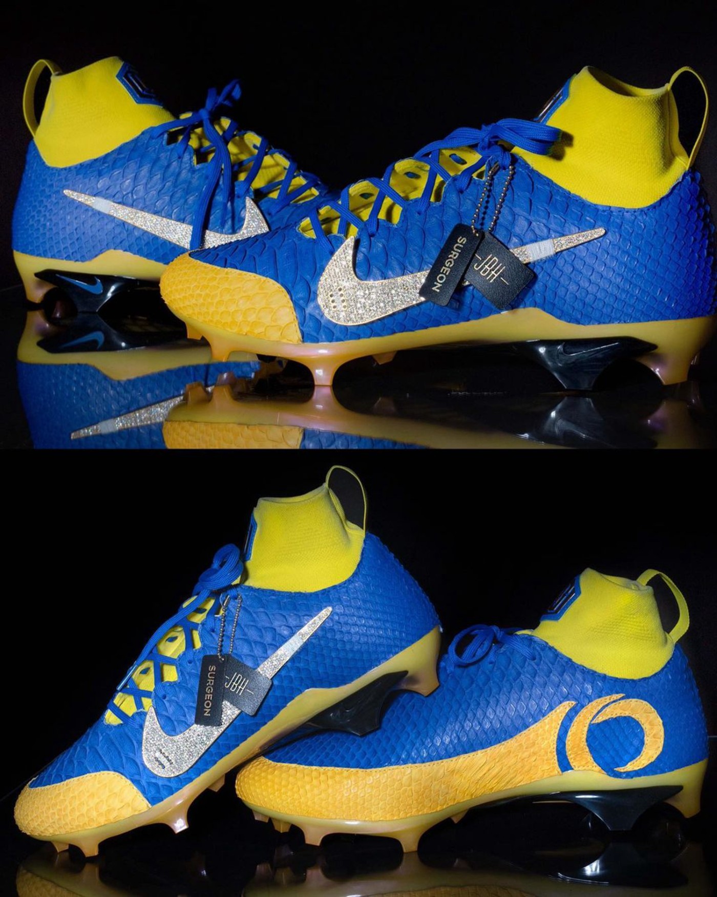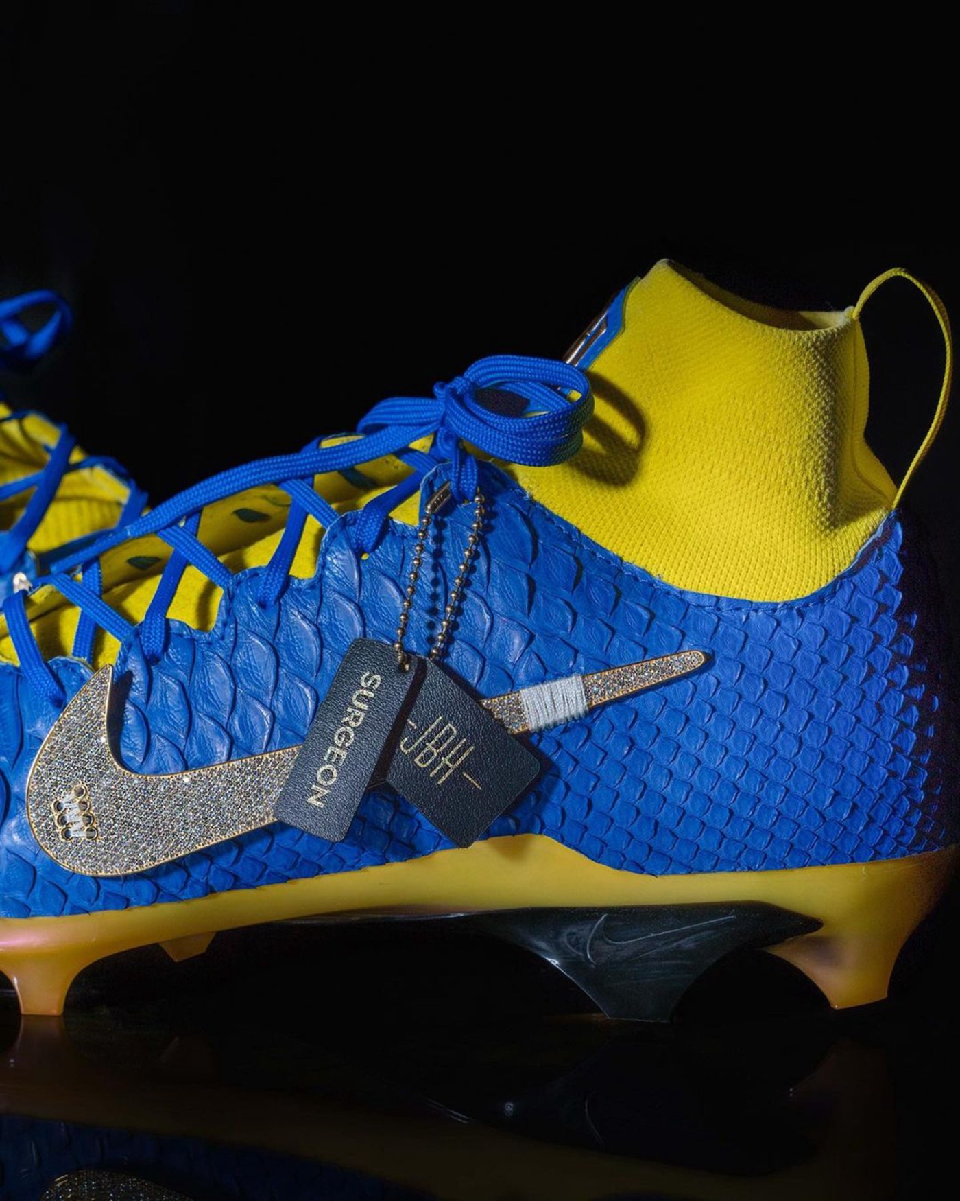 其中洛杉矶公羊队的外接手 Odell Beckham Jr 上脚了一双镶满钻石的球鞋,市价高达 $200000 美元。