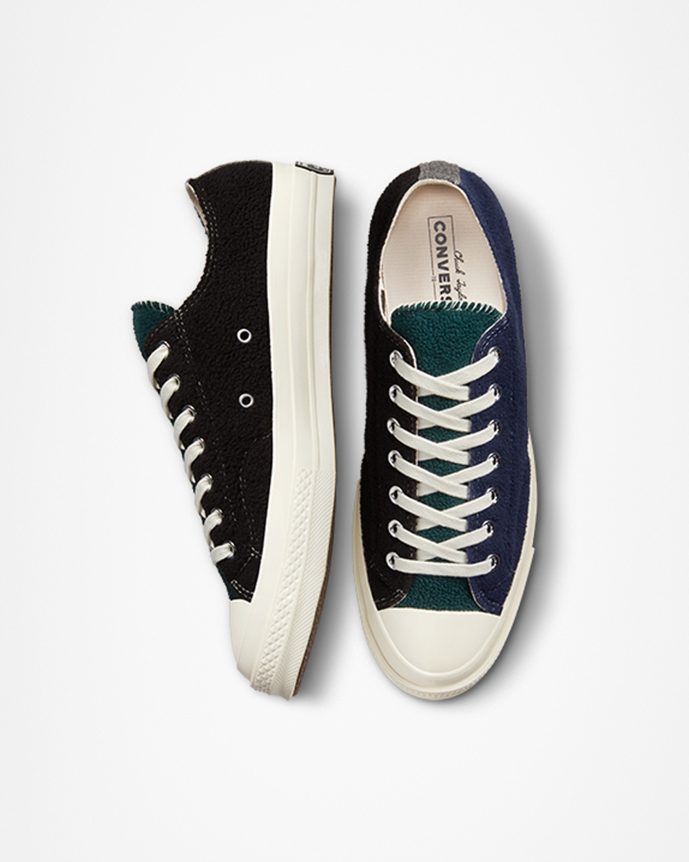 近日,双方再度携手以可持续发展为灵感,利用古着摇粒绒夹克打造全新 Chuck 70 鞋款。
