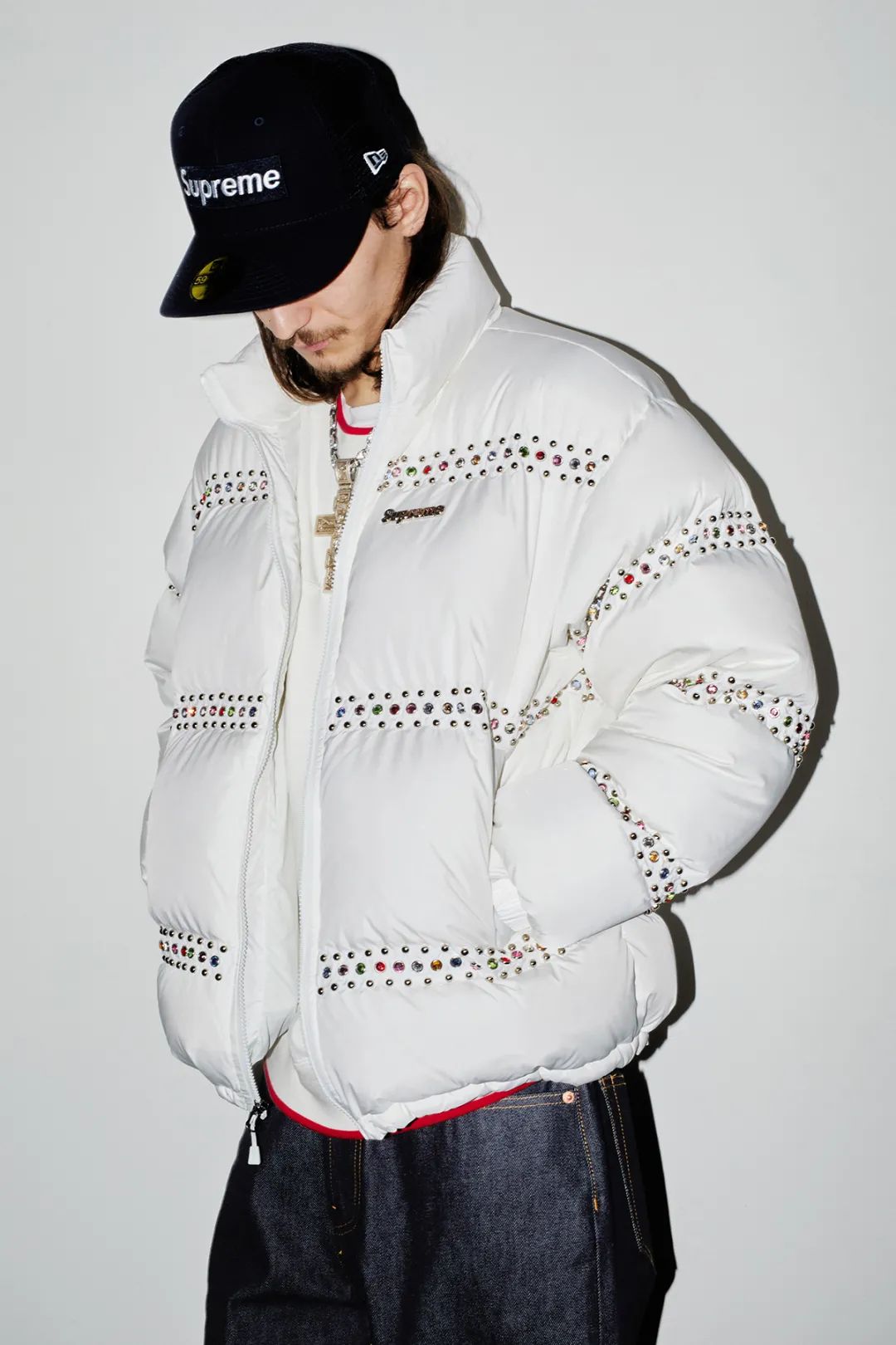 与时尚品牌 b.b.simon 合作的带来全新造型的宝石羽绒服,整体感觉既华丽又非常街头。