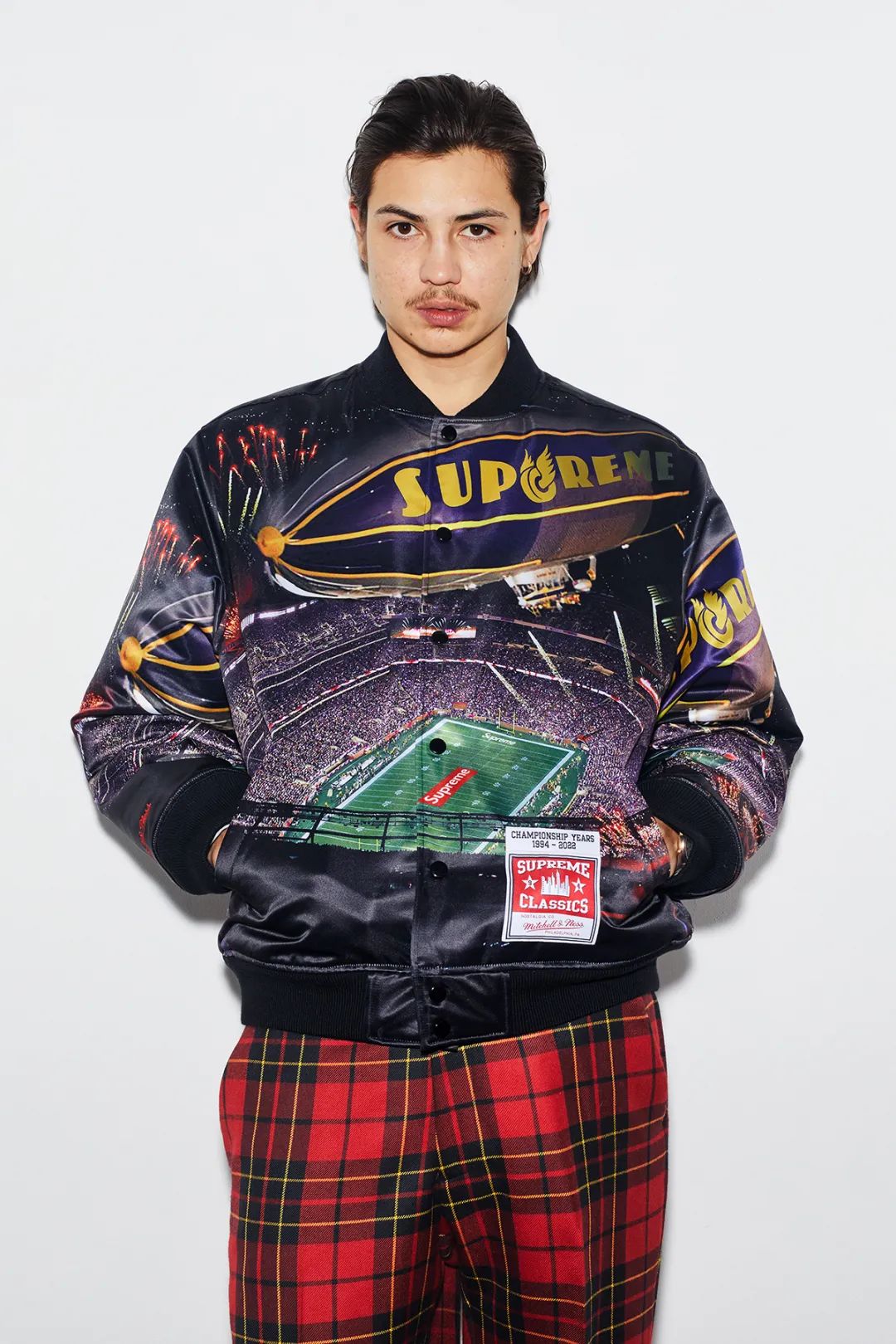 与复古球衣品牌 Mitchell & Ness 合作的运动风外套,搭配冲击力十足的印花图案,霸气又韵味十足。