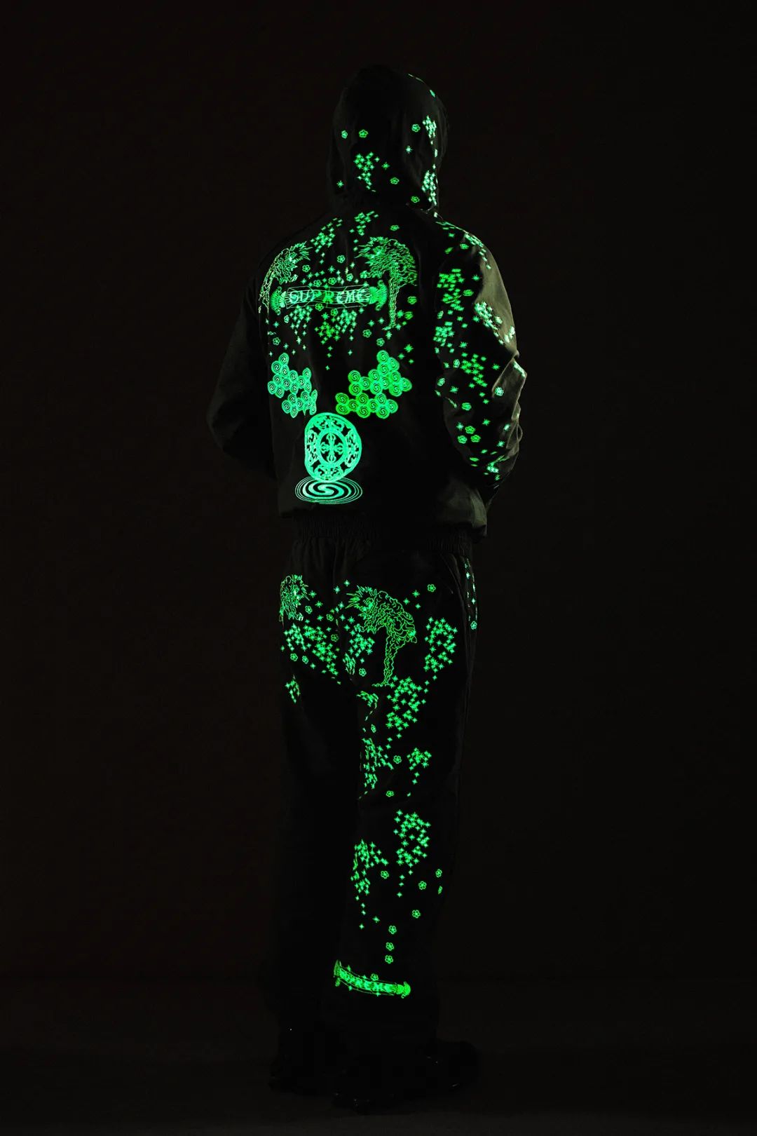 与艺术家 AOI 合作推出的服饰,最大的亮点在于暗藏大面积夜光属性,视觉效果相当独特。
