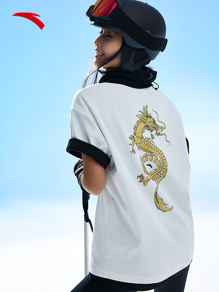 为纪念谷爱凌的成绩,安踏推出了「爱凌龙」T 恤。
