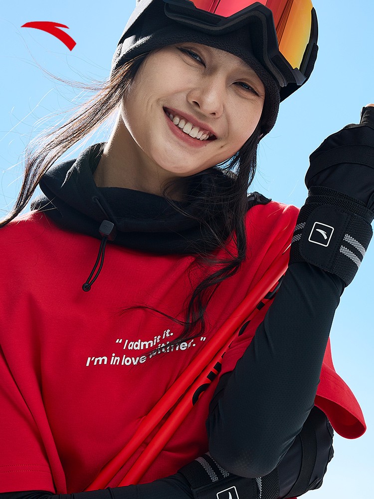 正面则印有「I admit it.I'm in love with fear.(我承认,我爱上了恐惧)」,展现谷爱凌对于运动的态度。