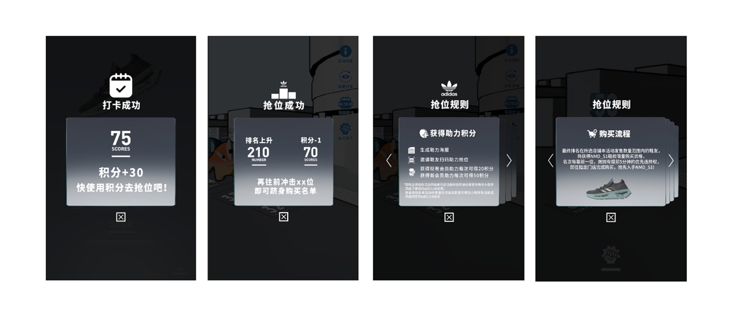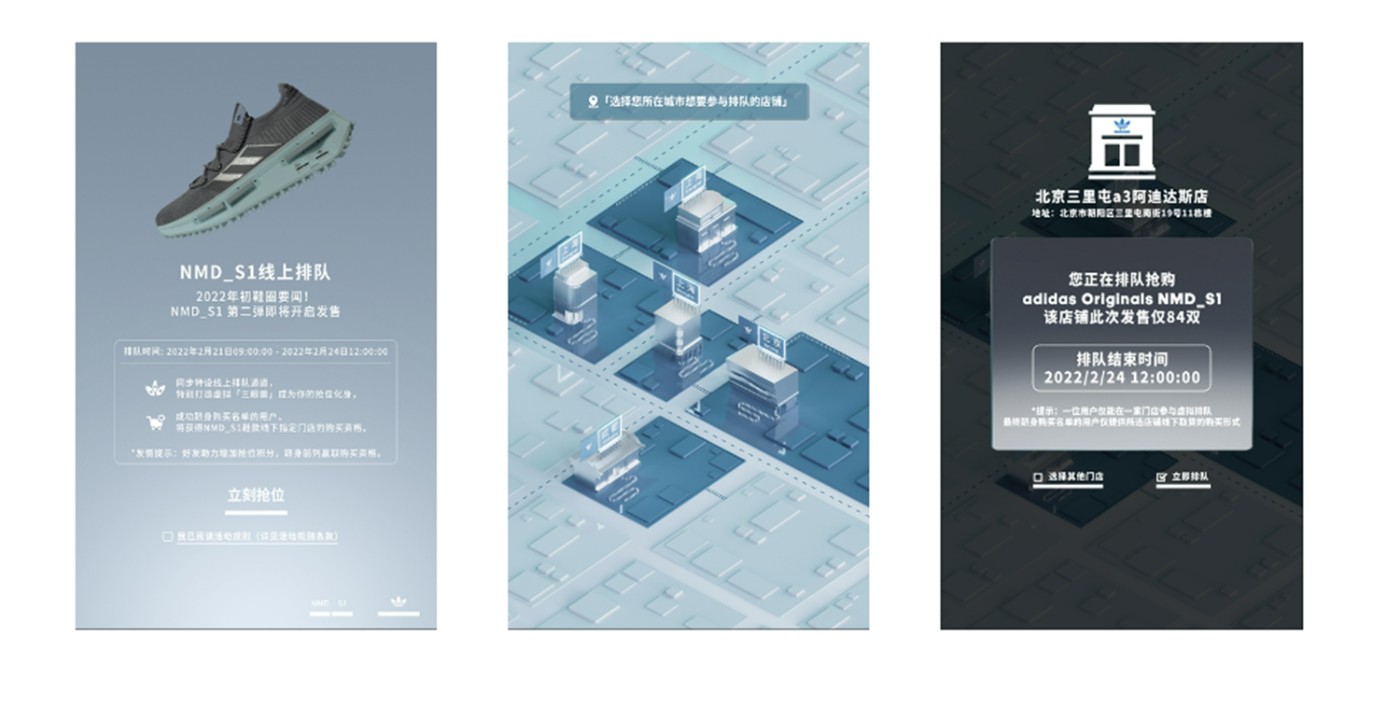 最大的亮点在于,adidas Originals 创新打造「线上排队」数字玩法,配合 NMD S1 新品发售,营造虚拟排队体验。