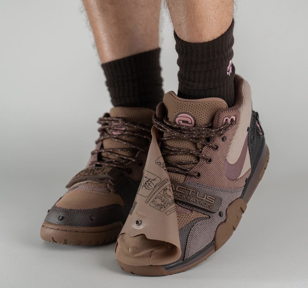 最近,此前多次曝光的 Travis Scott x Nike Air Trainer 1 在经历几轮实物曝光之后迎来实物上脚。