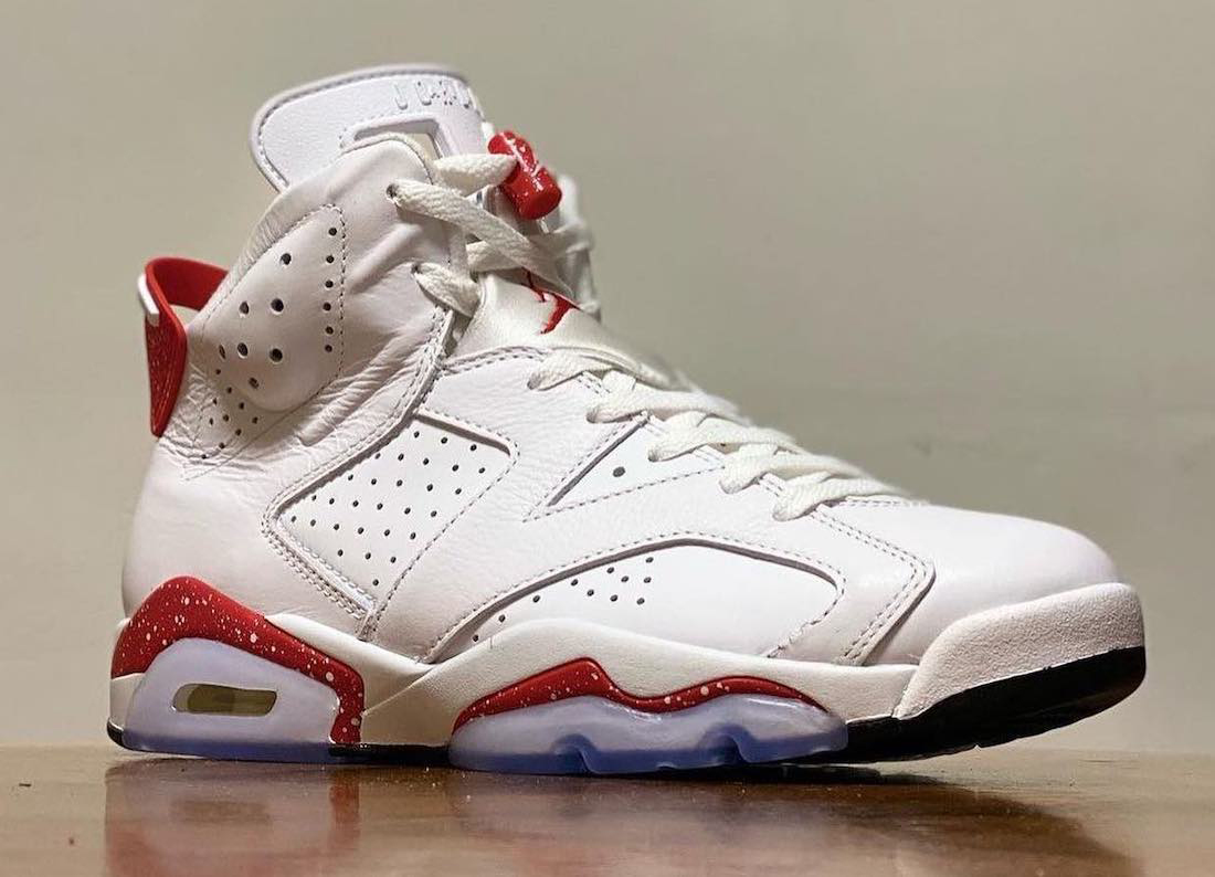 去年年底有消息称一双全新 Air Jordan 6 “Red Oreo” 计划在今年登场,随着效果图曝光后,近日终于迎来实物浮现网络。