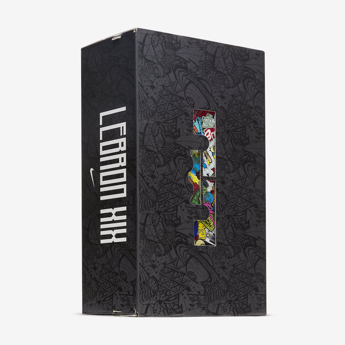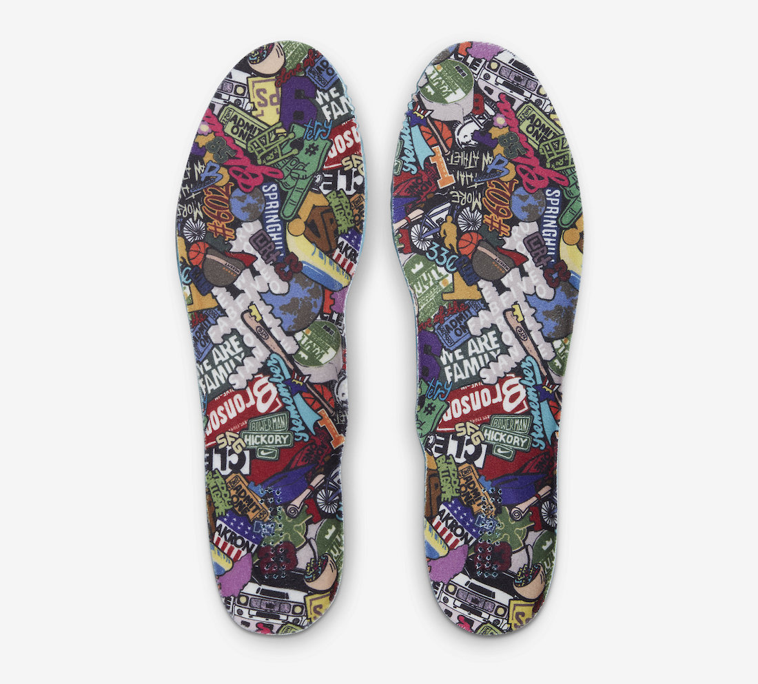 撕开鞋面,内侧印满卡通图案,全部都是关于詹姆斯生涯以及人生的各种元素。