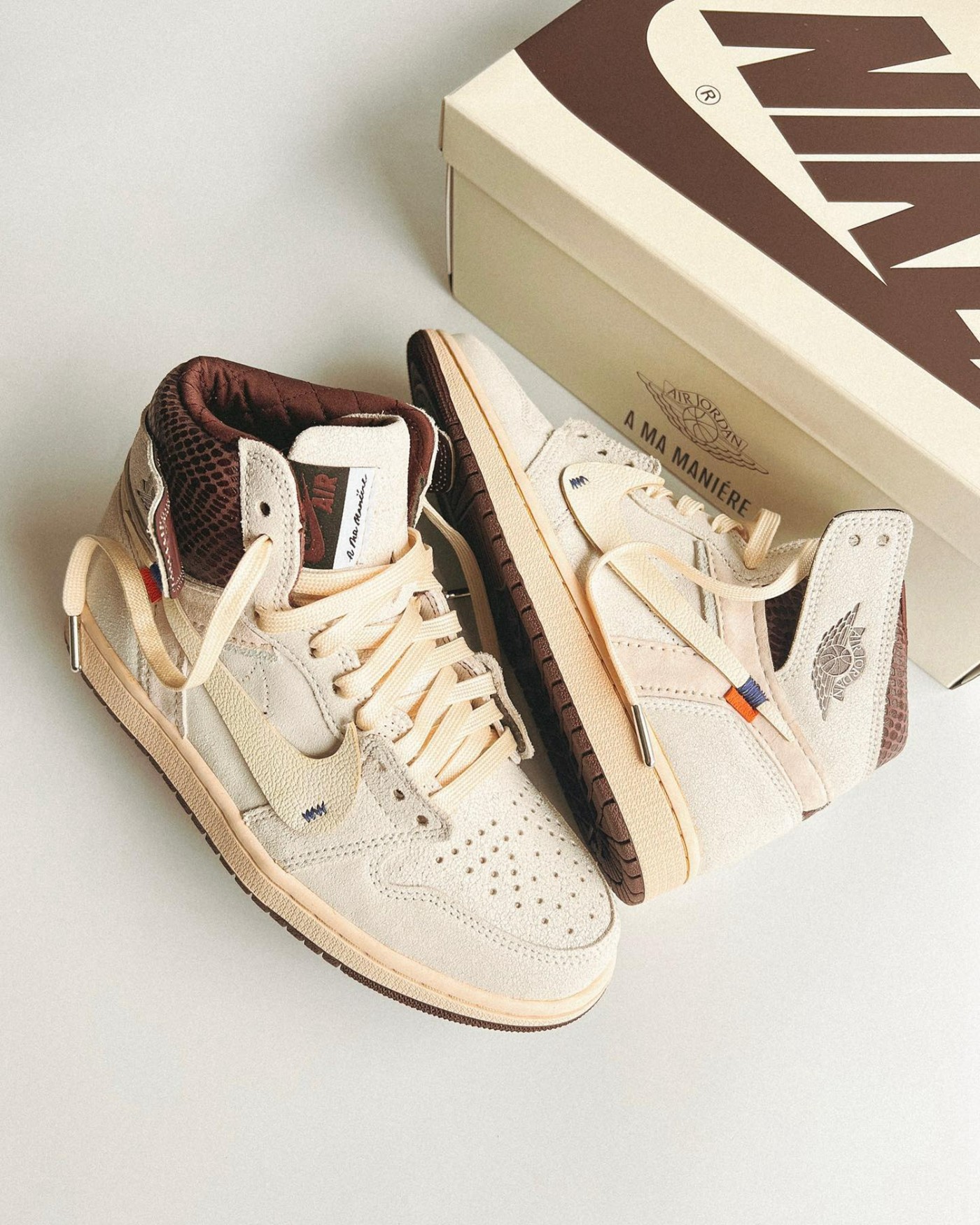 刚刚也提到了这个定制团队「全才」的属性,所以可以看到这双欧式风格的定制 Air Jordan 1 同样展示了他们扎实的制作功底。