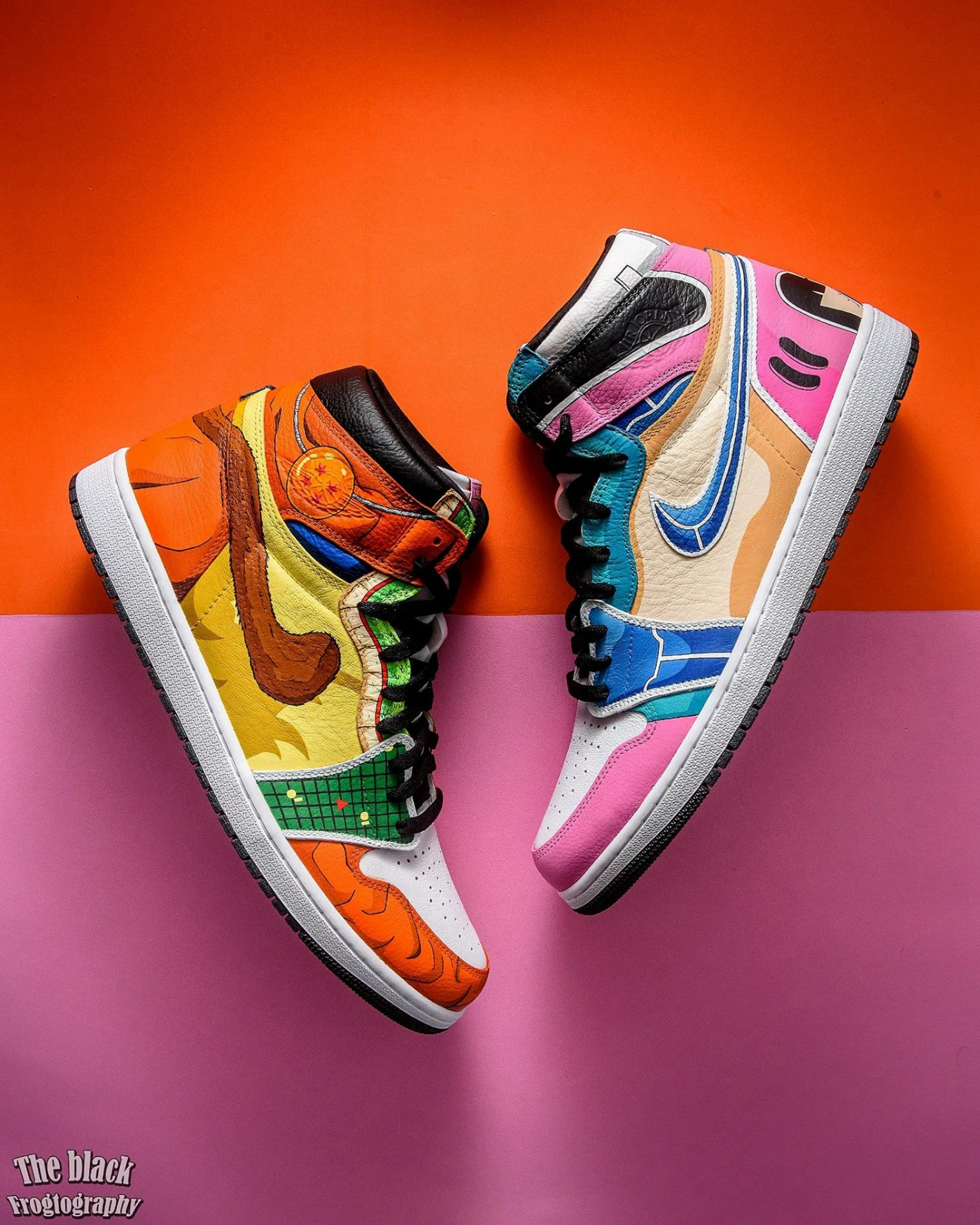 其中小编觉得最惊艳的一双当属《七龙珠》定制 Air Jordan 1,不仅把主角悟空的元素呈现出来,用猴子尾巴当 Swoosh 的巧思更是让人眼前一亮,并且还把龙珠探测仪的屏幕画在了鞋前侧框架处,确实是妙。