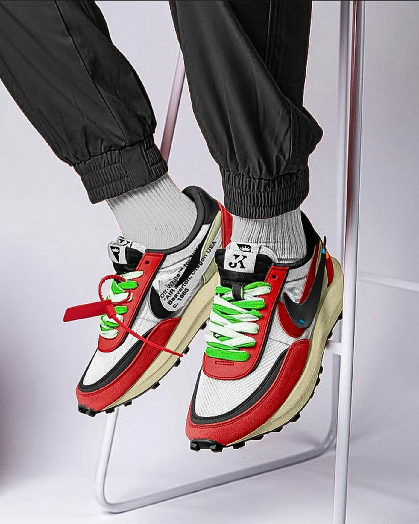 OFF-WHITE x Air Jordan 1 风格的定制 sacai x Nike LDWaffle 也是他们的得意作品之一。