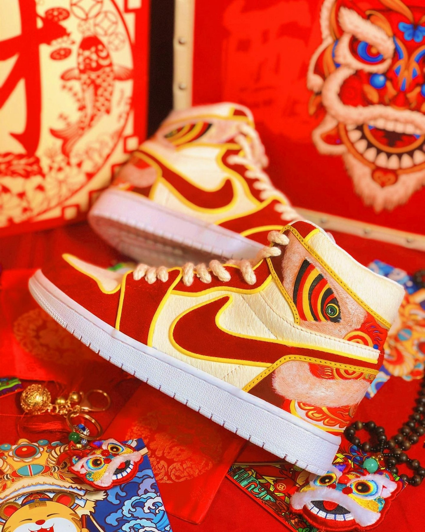 不仅有红红火火的新春主题定制球鞋,还有水墨风格的主题作品,作为一个海外定制团队,能把中国风呈现出这种效果,已经相当可以了。
