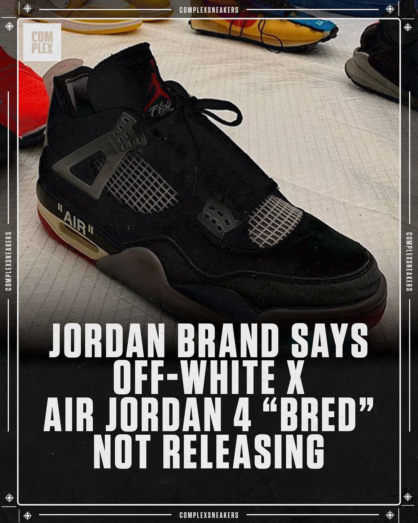 不过,据海外媒体报道,这双 OFF-WHITE x Air Jordan 4 黑红配色将取消发售,具体原因并未告知。