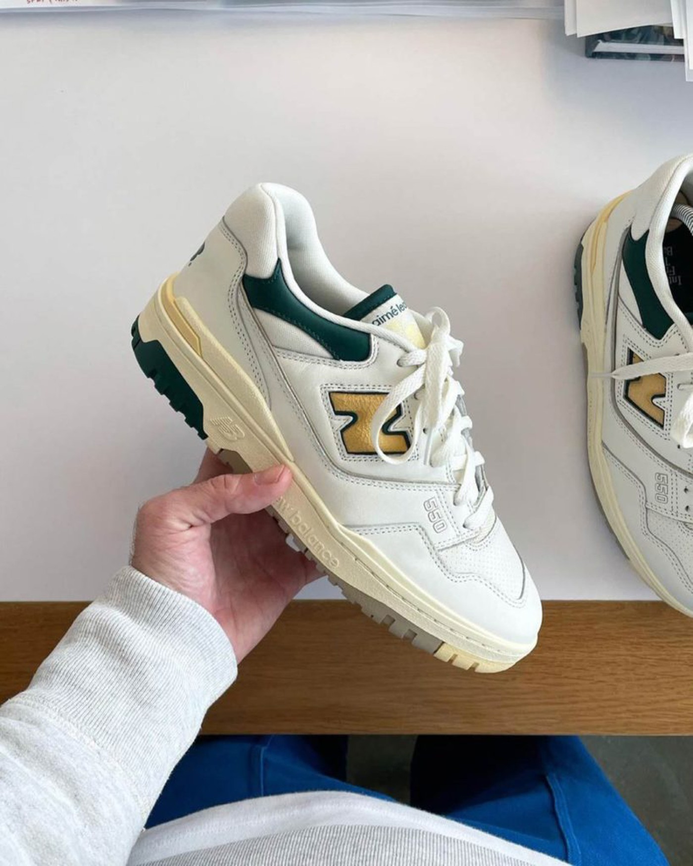 New Balance 550 是另一款今年爆火的鞋型,作为一款 Vibe 风搭配的绝佳选择,成了不少潮人必入款。