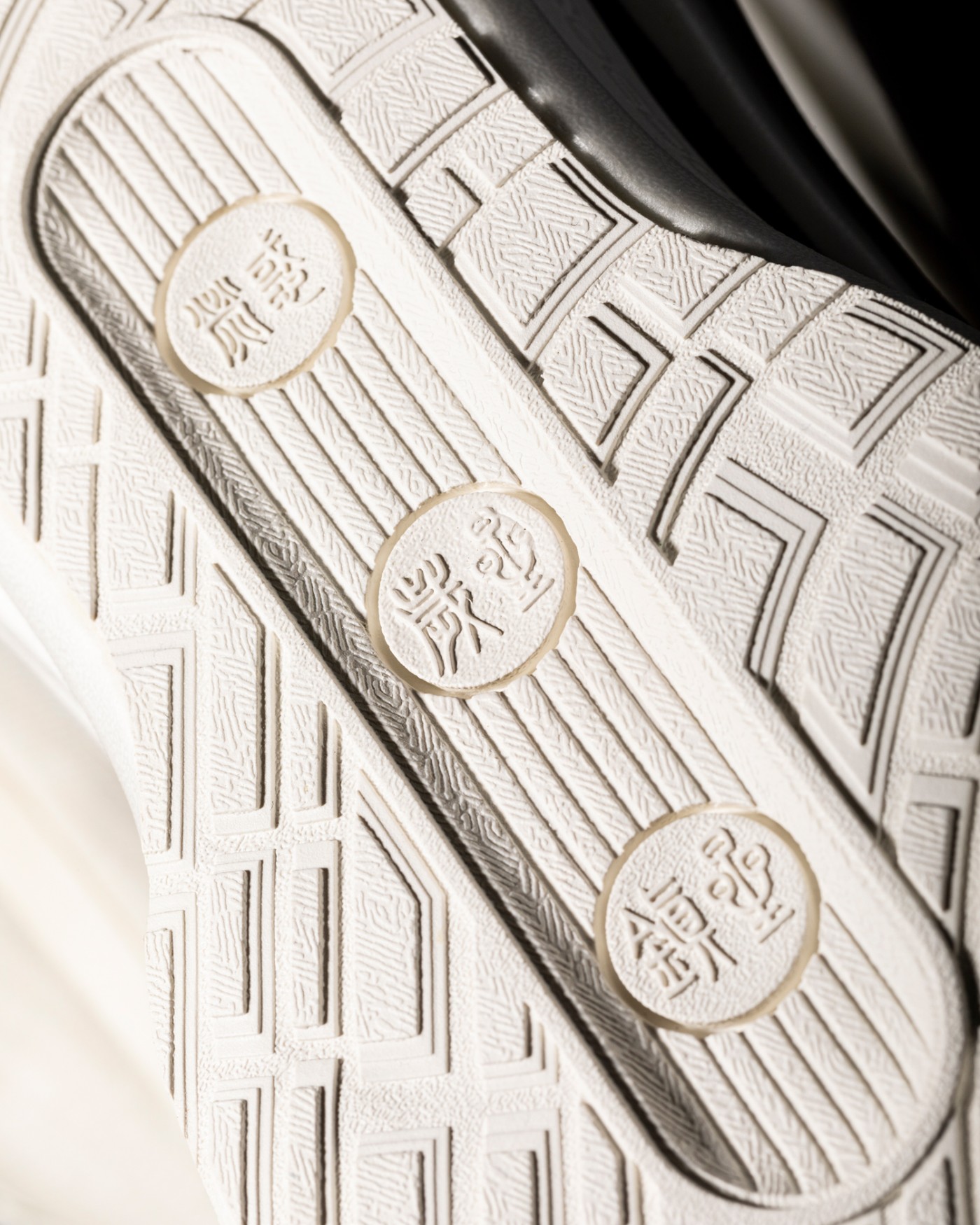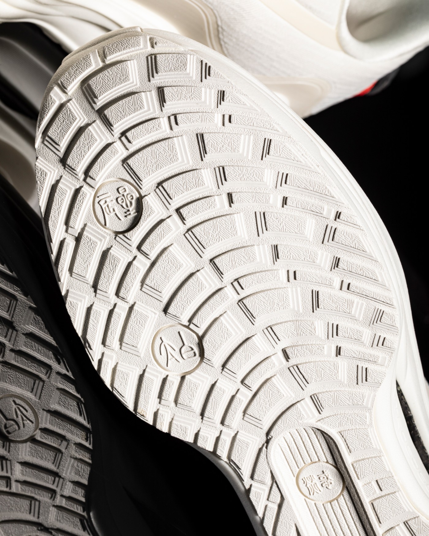 外底纹路中暗藏源于汉代织锦五星元素,寓意 “五星出东方利中国”。