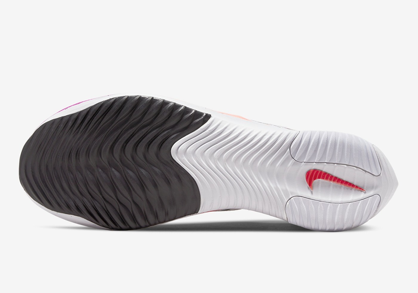 中底则是全掌 ZoomX 泡棉材质,在鞋跟处也有家族式的上翘尖头设计。