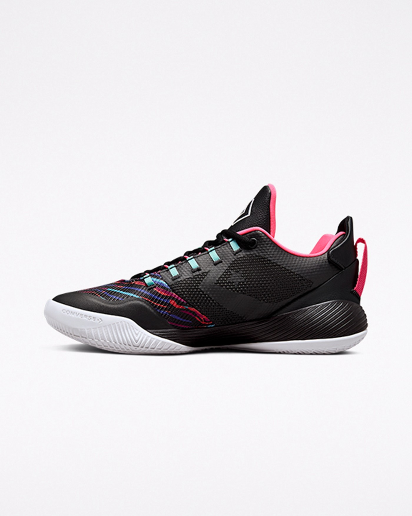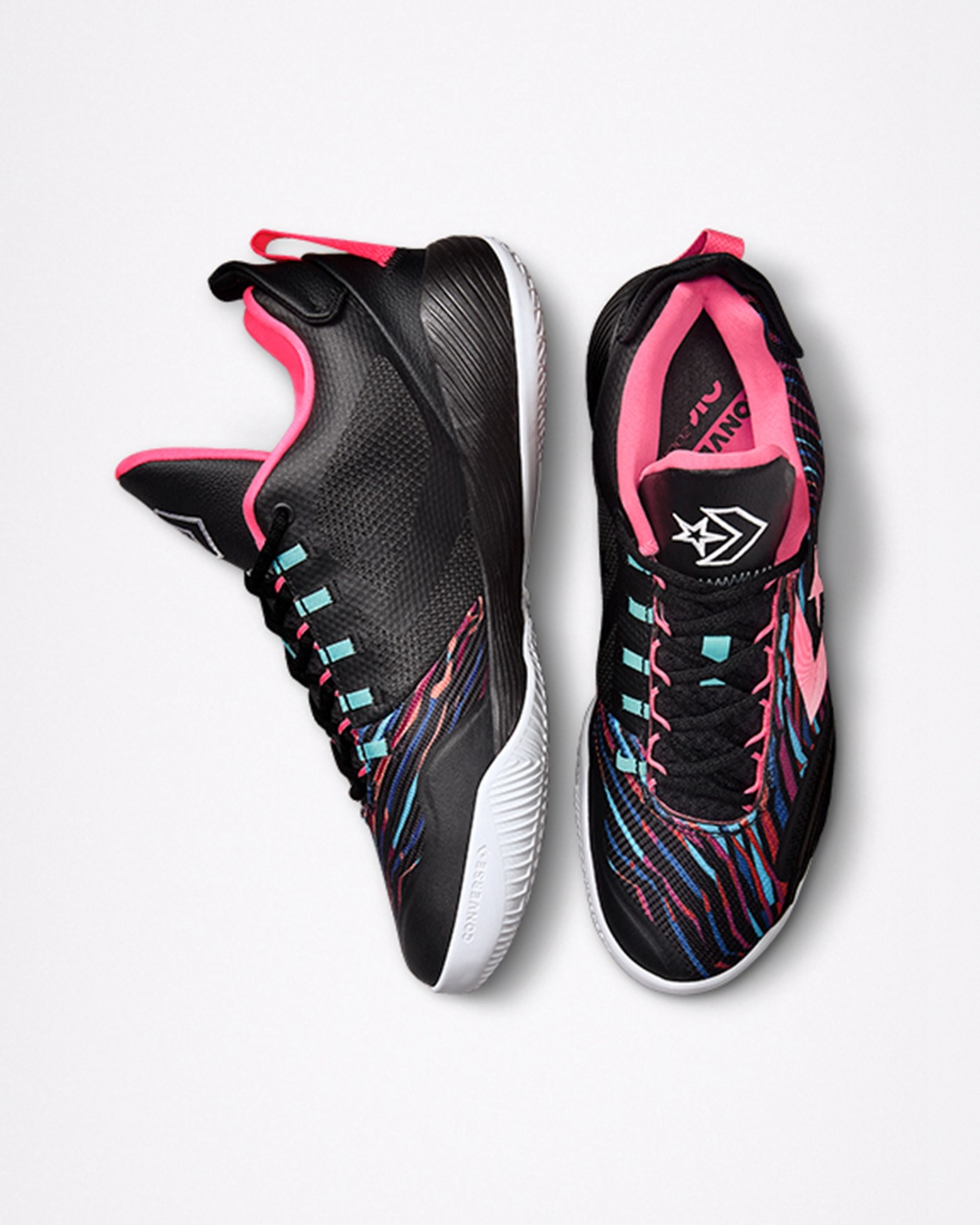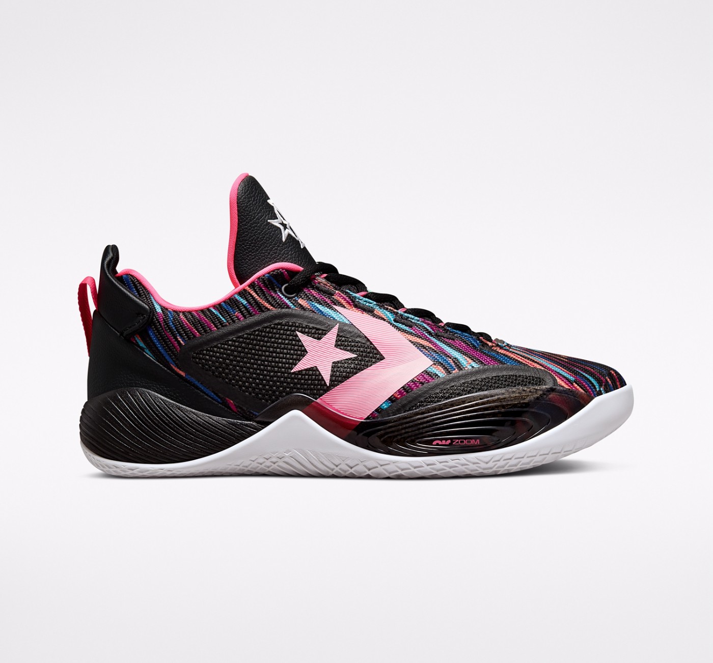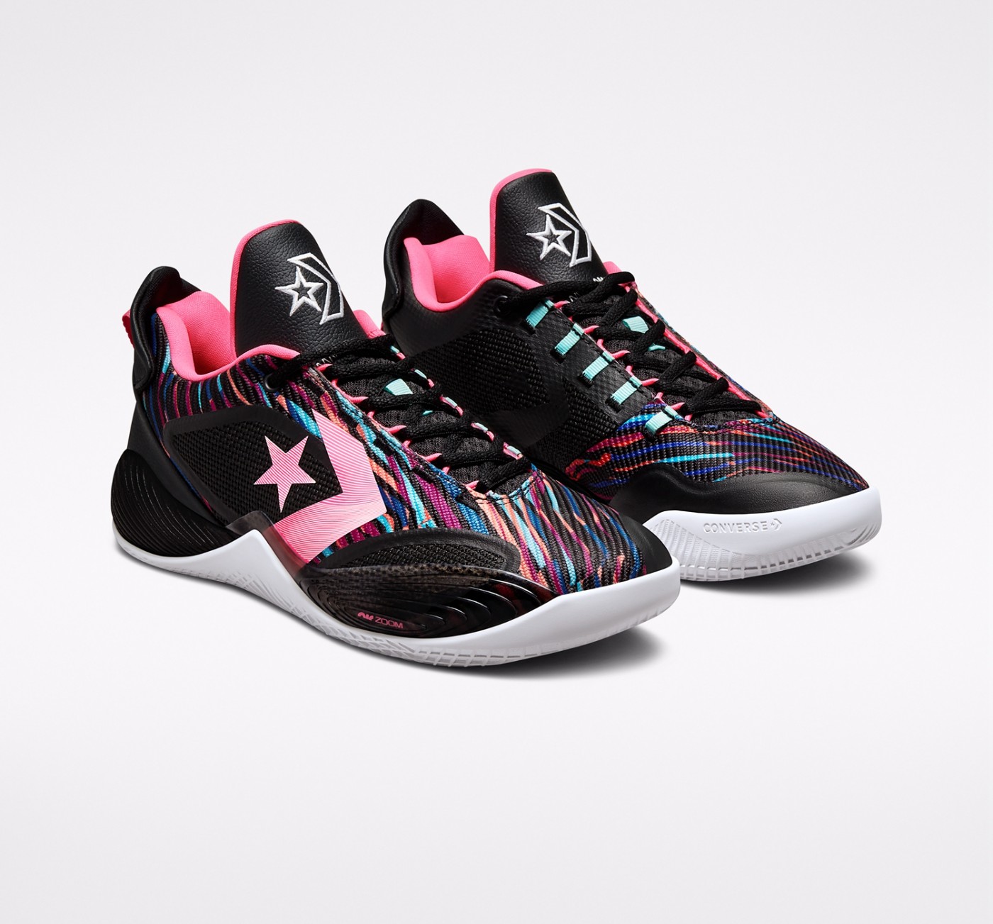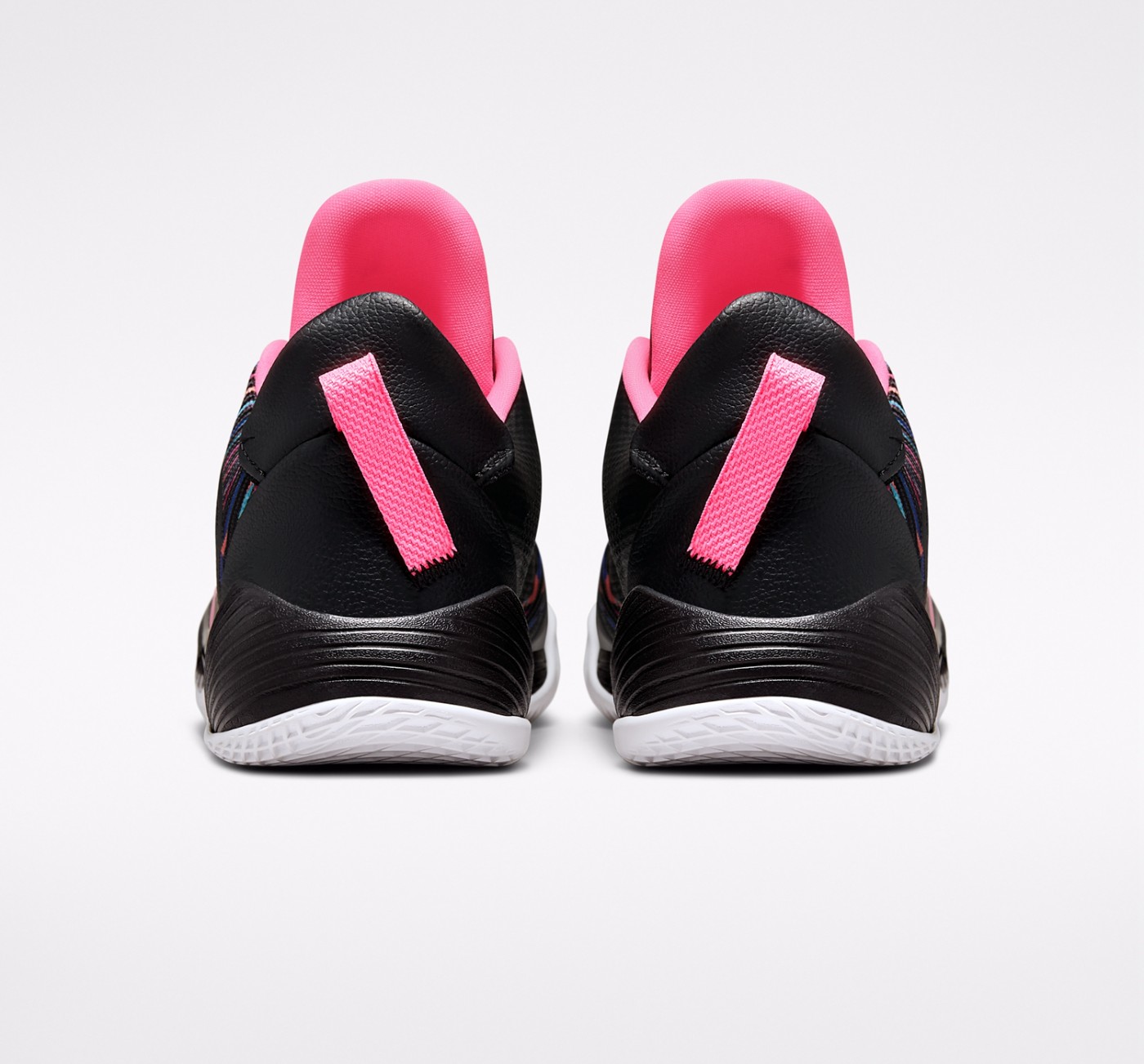 鞋面主题选用黑色呈现,鞋身中段的 Converse 经典星箭 Logo 则采用粉色热压,更有视觉冲击力。