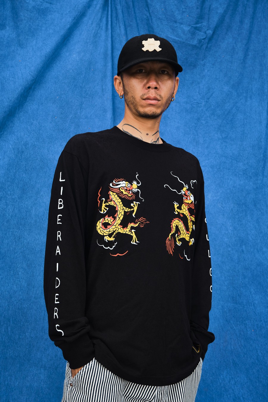 以代表中华与北京的龙图腾展现合作初衷,并采用 “L” 与 “S” 的姿态,象征 Liberaiders 与 SOULGOODS 的品牌身份,龙身所采用的金、红与黑色取材于北京的经典建筑群——故宫。