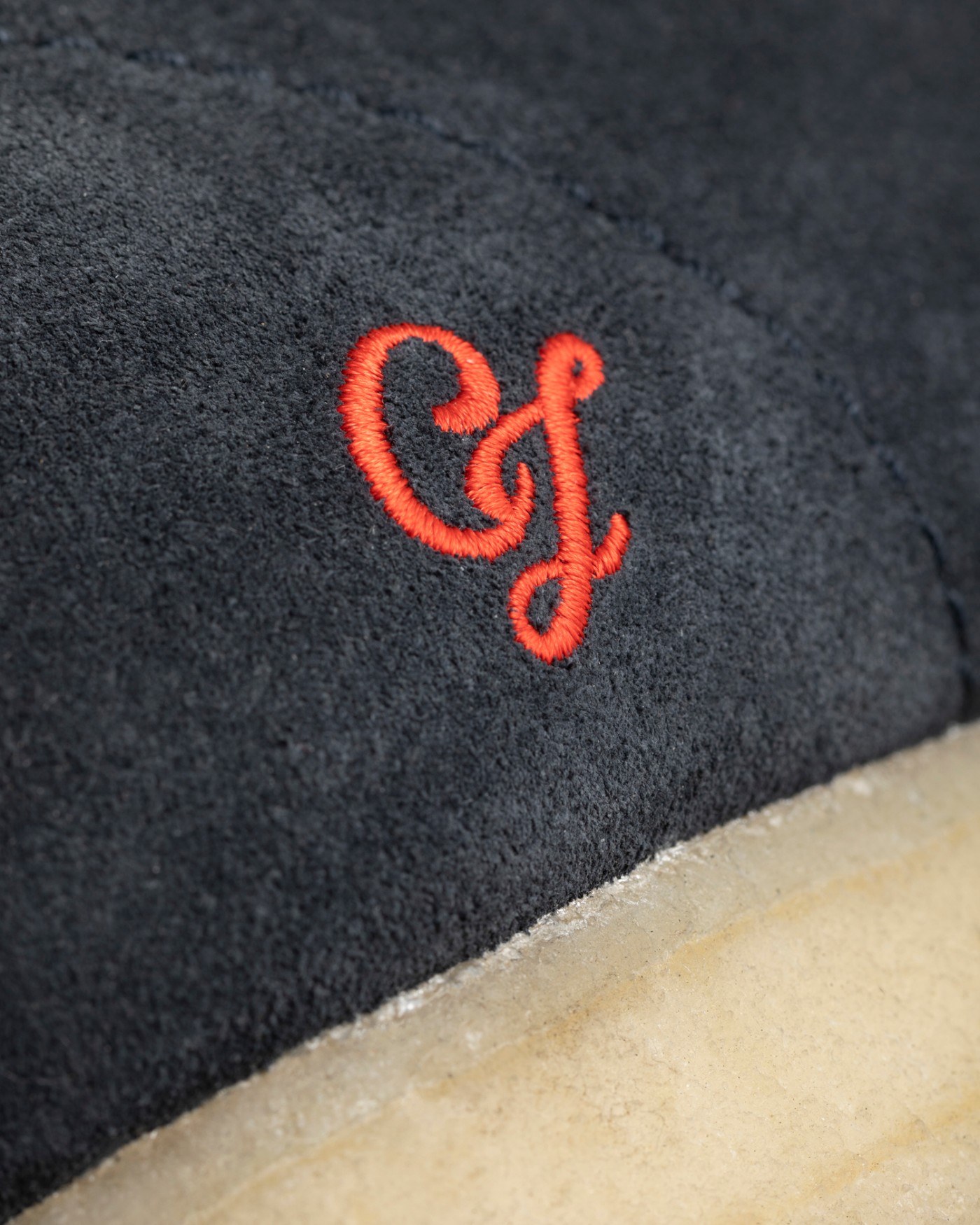 后跟位置辅以红色刺绣醒目点缀 Clarks 品牌前身 C&J Clark 的字母缩写,致敬品牌悠久历史。