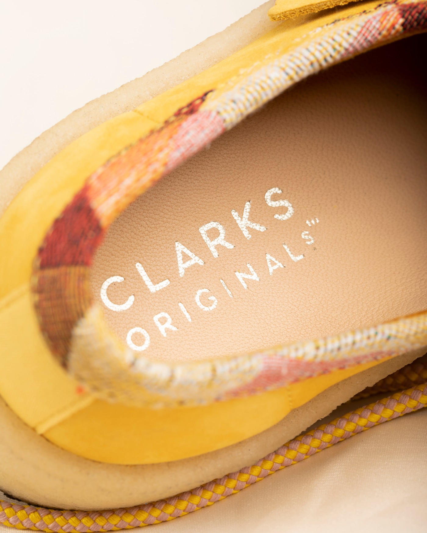 皮质鞋垫压印 Clarks ORIGINALs 标识,并进行了加厚缓震处理,进一步提升穿着的舒适性。