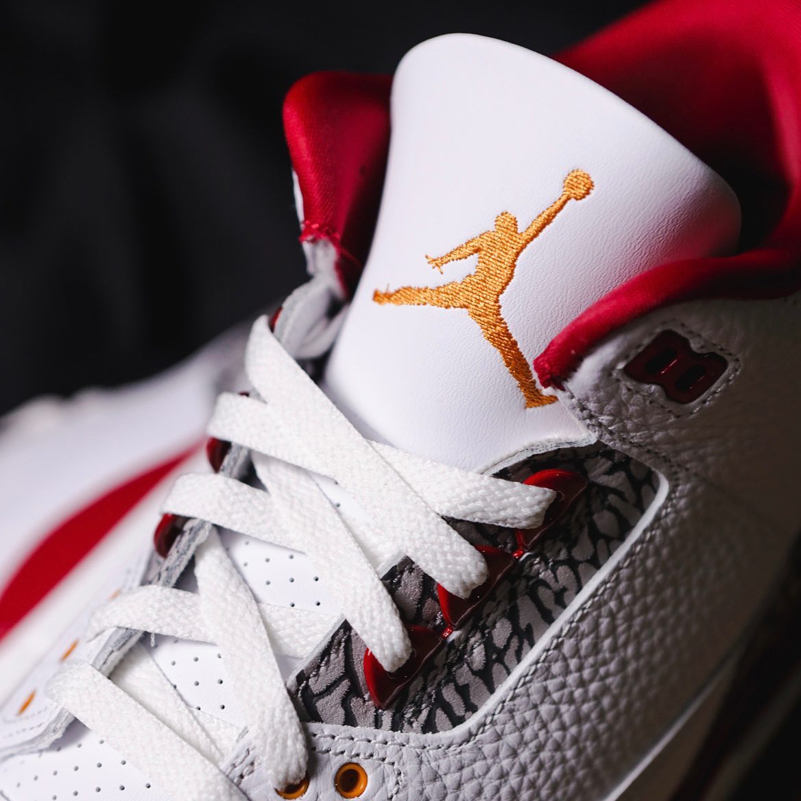 既有着 AJ3 白水泥的经典元素,又注入 AJ7 “Cardinal” 的构色方案,这双新白红 Air Jordan 3 “Cardinal Red” 近期赚足了眼球。