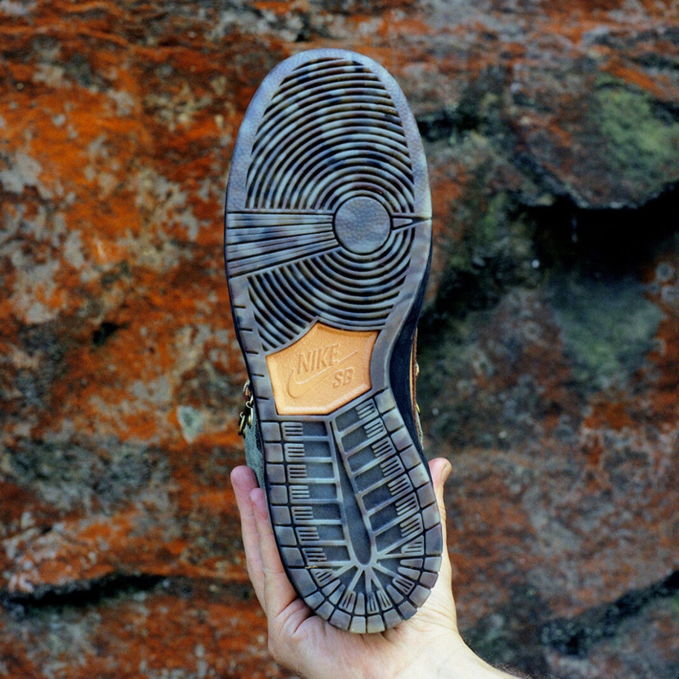 Pass~Port 是一个来自澳大利亚的滑板厂牌,在当地小有名气,这次 Nike 选择他们作为合作对象也是看重他们的户外工作靴一般的设计语言,整体气质相当粗犷。
