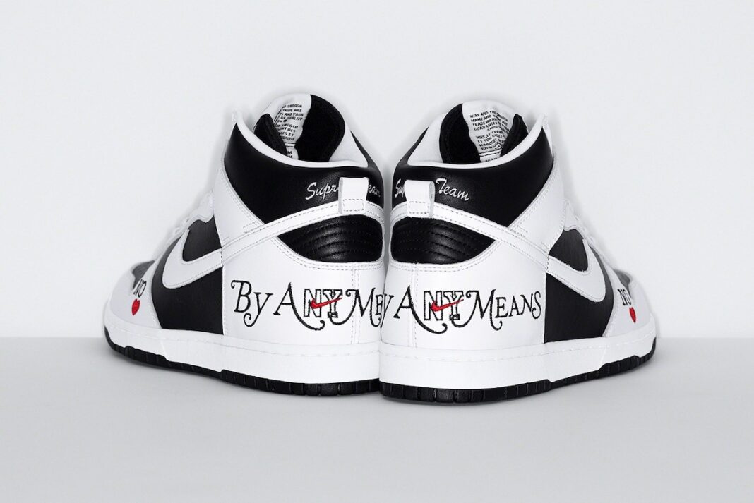 后跟处 “BY ANY MEANS” 字样,以及 Supreme Team 刺绣,精致感满满。