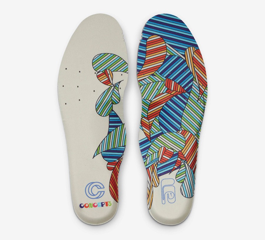 除此之外,鞋盒采用对应的花纹与装饰元素重塑,随鞋还附赠吉他拨片挂饰和额外配色鞋带,进一步完善音乐节的独特主题。