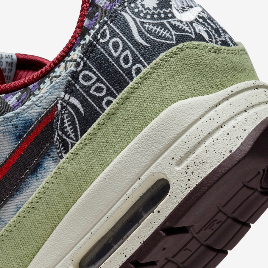 以上世纪 60 年代末的音乐节为灵感,眼前这款 Concepts x Nike Air Max 1 “Mellow” 整体采用牛仔布、军装布料、天鹅绒与灯芯绒等材质打造,还原当年参加音乐节人们的多元穿搭风格。