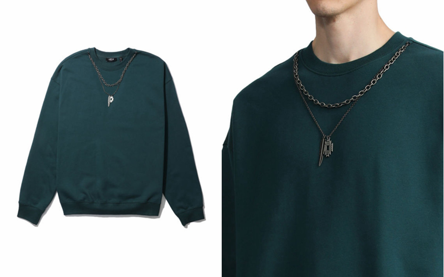▼ FIVE CM 链条坠饰落肩卫衣