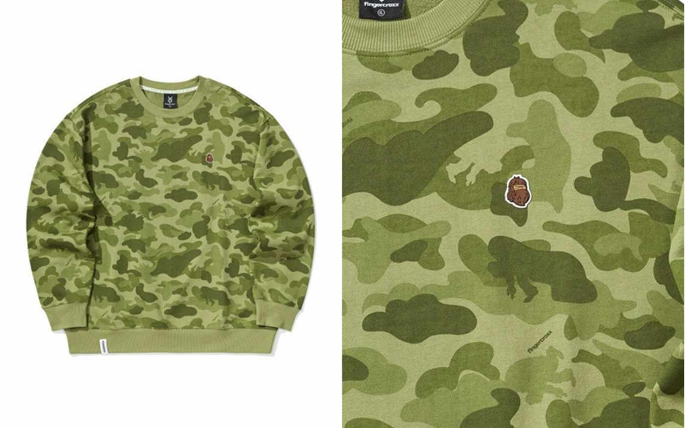 如果想要在春季穿搭中呈现更加街头风格的选择,全新的 FINGERCROXX 的迷彩卫衣一定是首选。