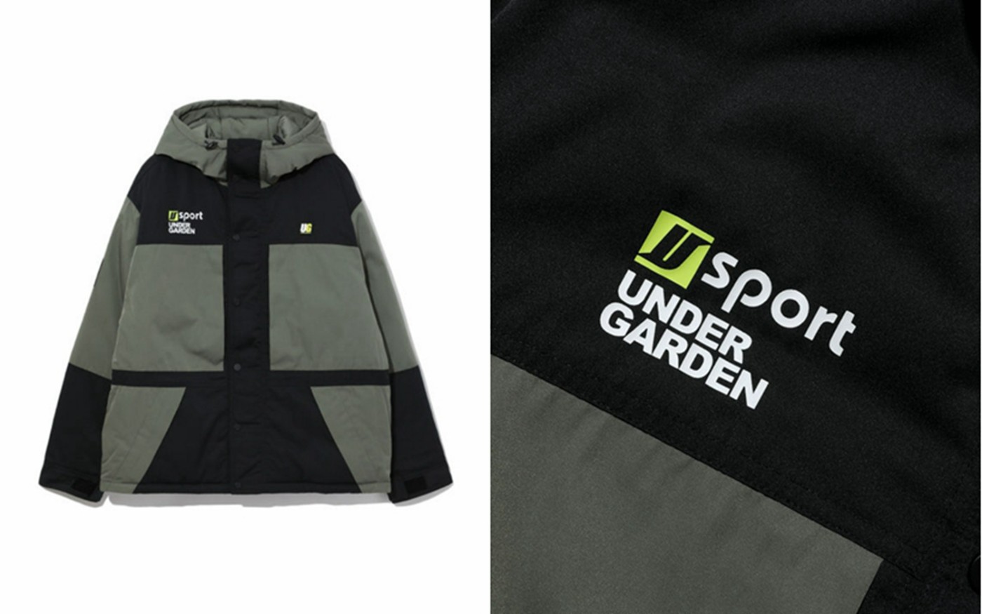 ▼ UNDERGARDEN Logo 印花拼色连帽羽绒外套