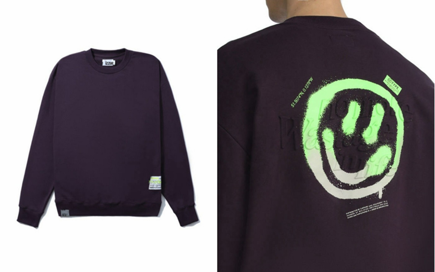▼ izzue 立体感标语装饰笑脸印花卫衣