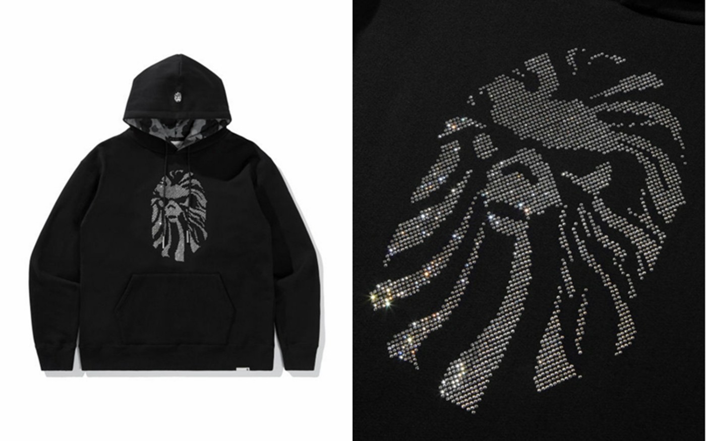 ▼ BAPE BLACK 饰水钻猿人头连帽卫衣