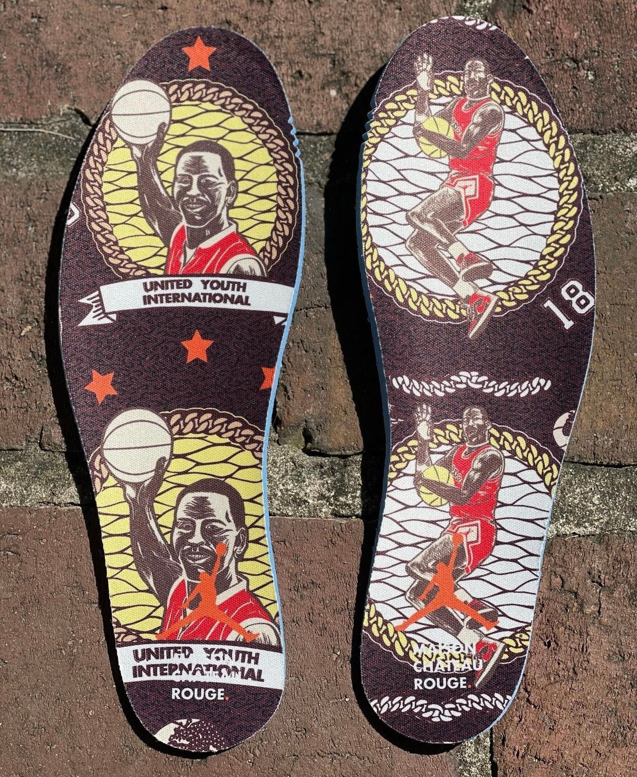 左、右鞋垫的飞人绘画释放出强烈的品牌格调,内外都是戏,这样的联名可比只会玩调色盘香多了!