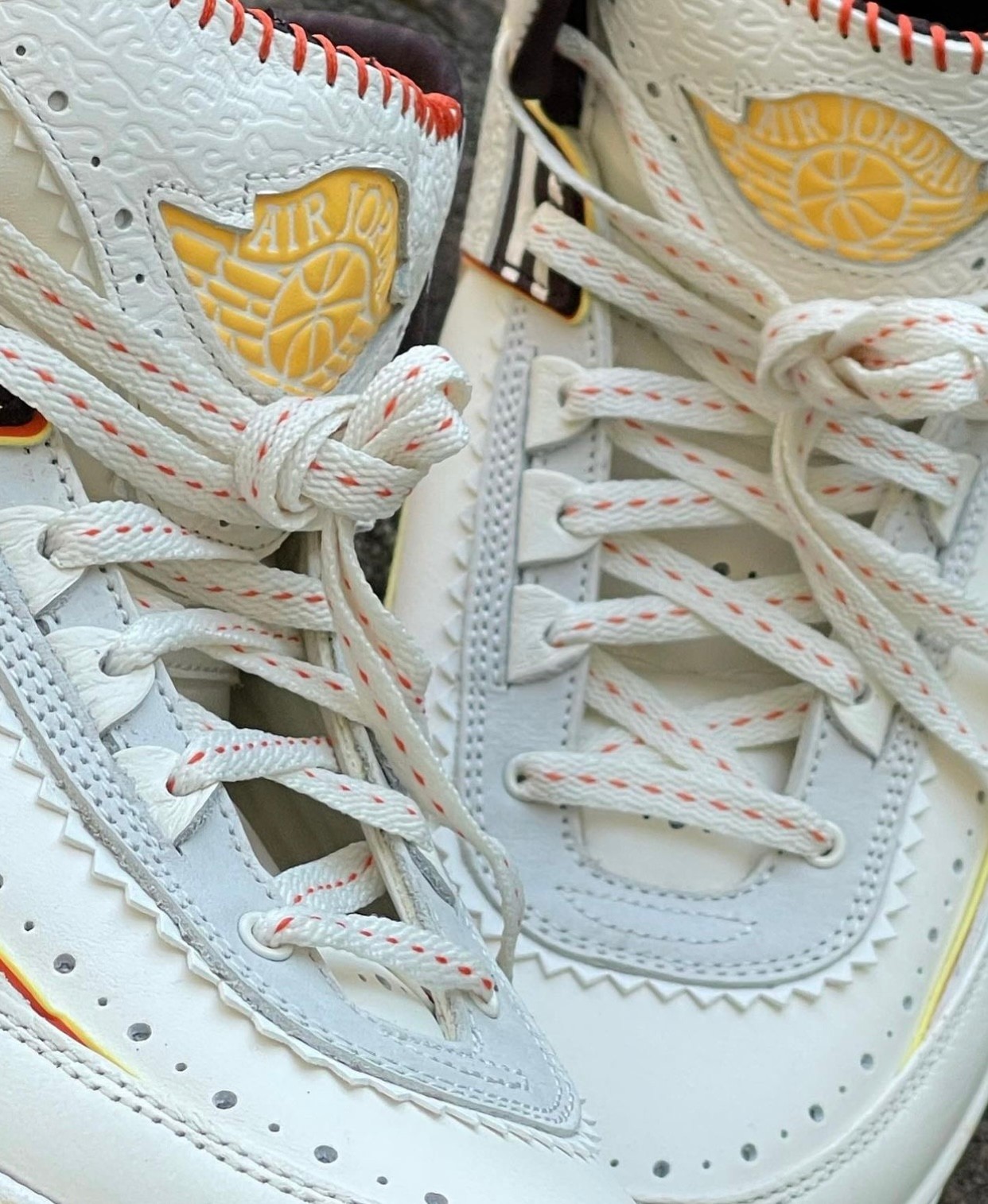 整体采用白色 Air Jordan 2 为基础,鞋头补强、鞋带孔锯齿、鞋舌车线等设计注入丰富的解构手法,带来更具时尚气质的个性诠释。