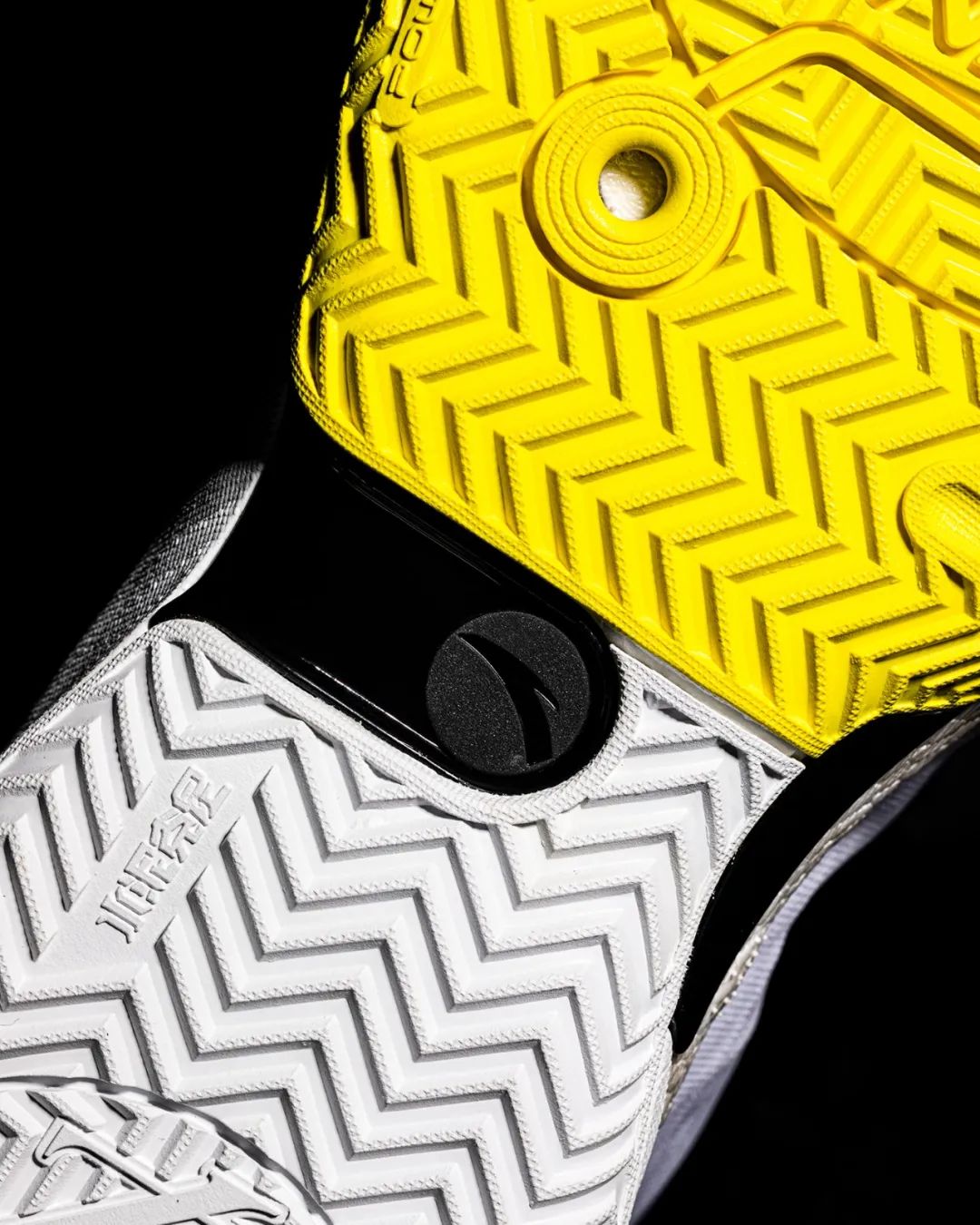 全掌不同方向的人字纹,搭配中足内置的 TPU 抗扭片,可静可动提升球场表现。