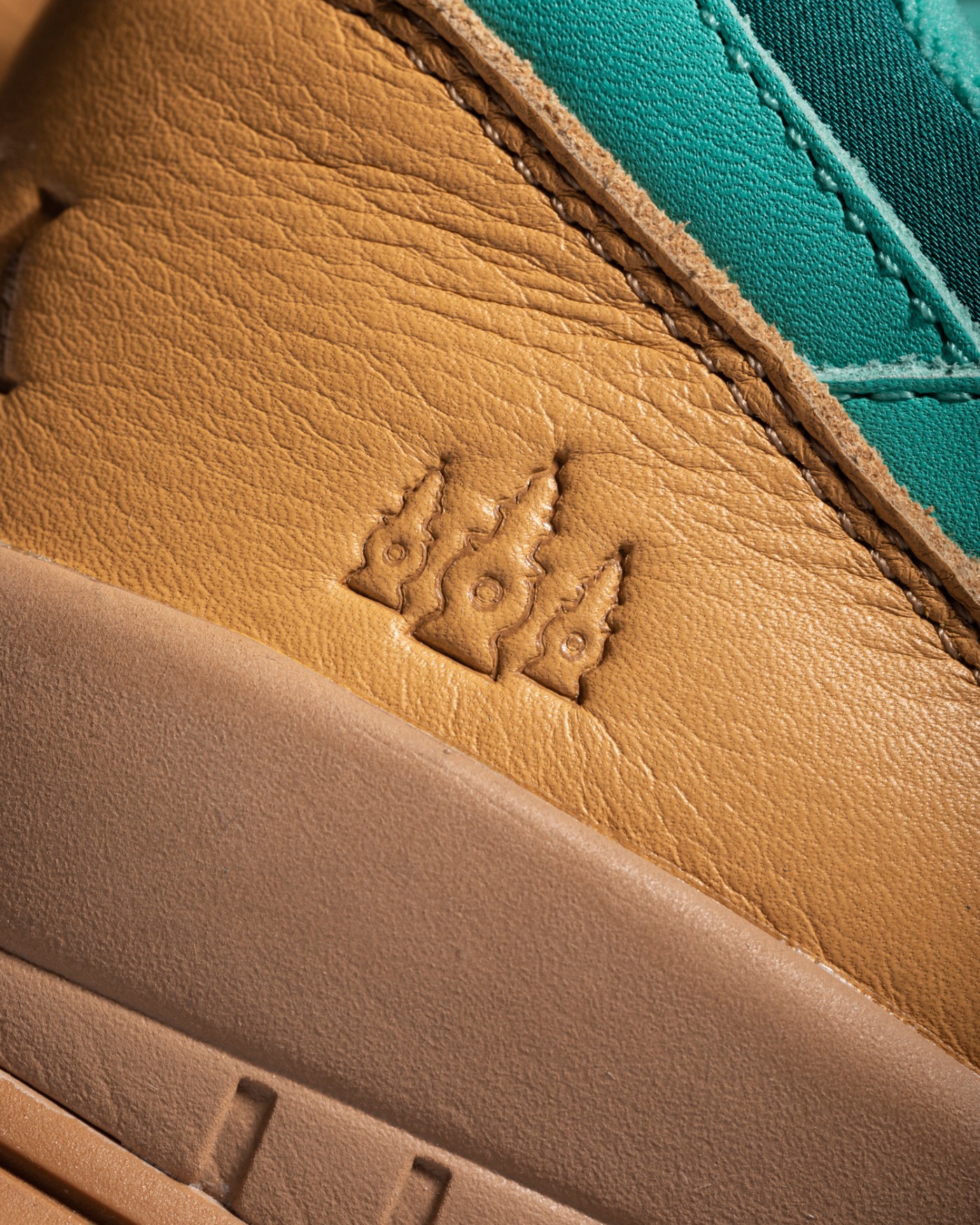 鞋跟部位皮革上有着西湖十景之一「三潭印月」的浮雕,彰显杭州配色的独特身份。