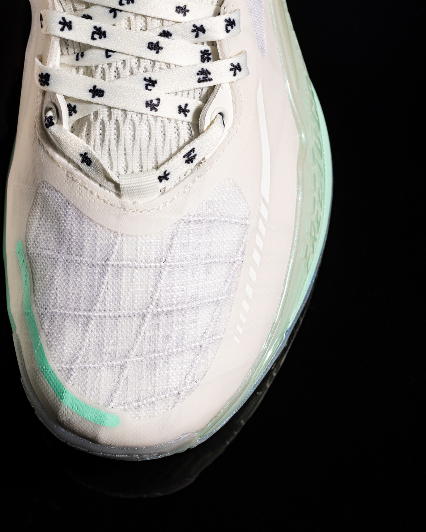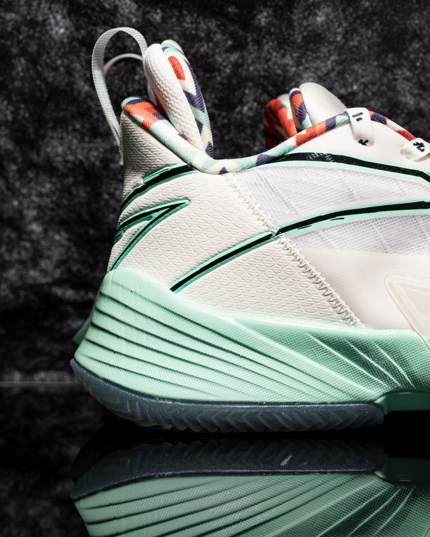 其他细节方面,后跟部分带有龙鳞纹理,超大安踏 Logo 以涂鸦墨迹呈现。