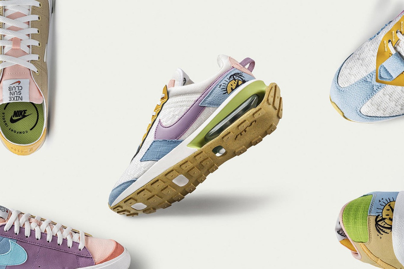 全新 Sun Club 系列由鲜艳配色以及回收布料和合成绒面革制成,系列产品包括了 Dunk Low、Air Force 1 Low、Blazer Low 和 Court Vision Low。