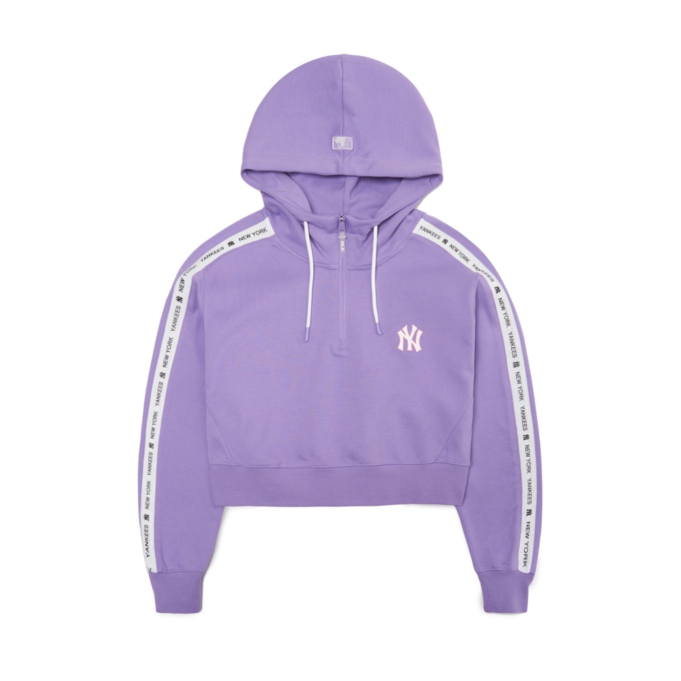 本系列采用舒适版型设计,以黑、灰、香芋紫这三种百搭配色为底并用亮色 NY 小 Logo 进行点缀,丰富了高腰短款上衣和短裤的设计层次感。