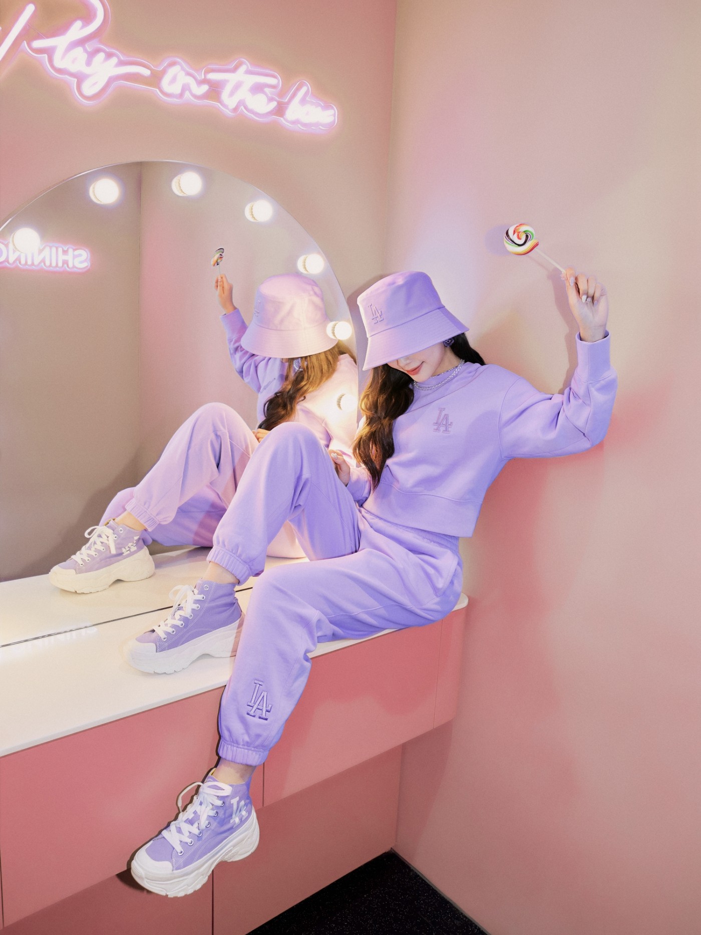 MLB 品牌将全新升级的五种活力亮眼色系(雾霾蓝、明黄、香芋紫、奶茶色和豆沙绿)搭配上简约的 Logo 设计以及舒适的版型剪裁打造全新 BASIC 同色系卫衣套装。