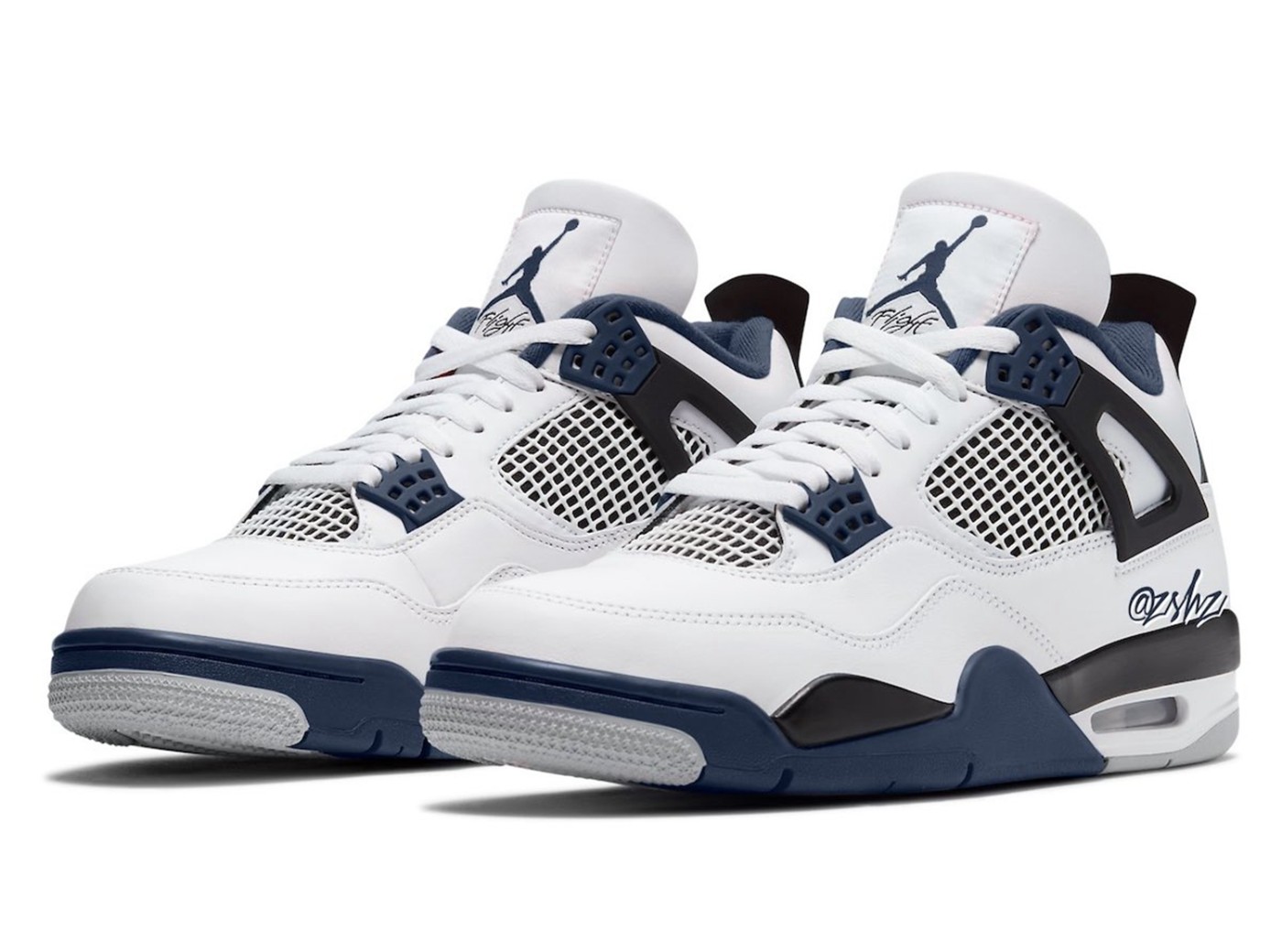 整鞋使用皮革材质打造,整体配色使用了 Air Jordan 系列经典的午夜蓝,鞋面的色彩搭配和之前的 Air Jordan 4 “白红” 颇为相似。