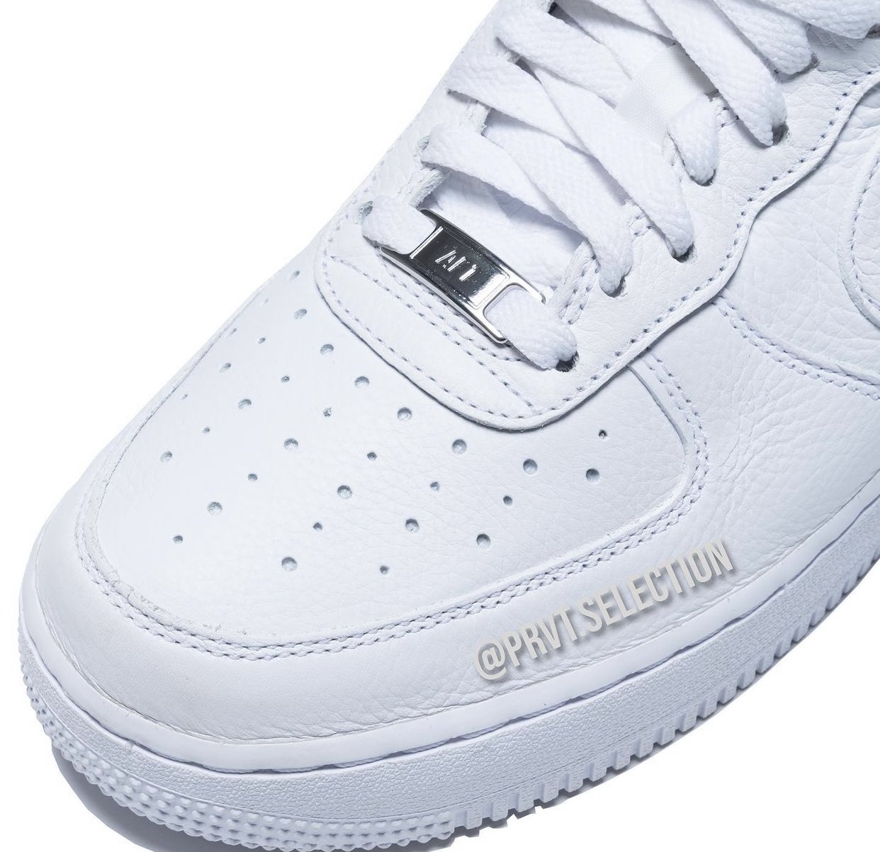 鞋后跟用三剑 Logo 替代传统 Air Force 1 鞋款的 “AIR” 字样,彰显联名身份。